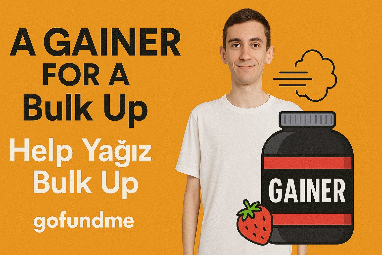 We’re raising $300 to buy him 3 tubs of this magical powder and fuel the journey to actual human weight. Your support will help Yağız go from “Is that a breeze?” to “Whoa, bro, you lift?” By the end of 3 months, we want him to cast a shadow (yes, an actual shadow) and wear a hoodie that fits like a glove — not like a tent.