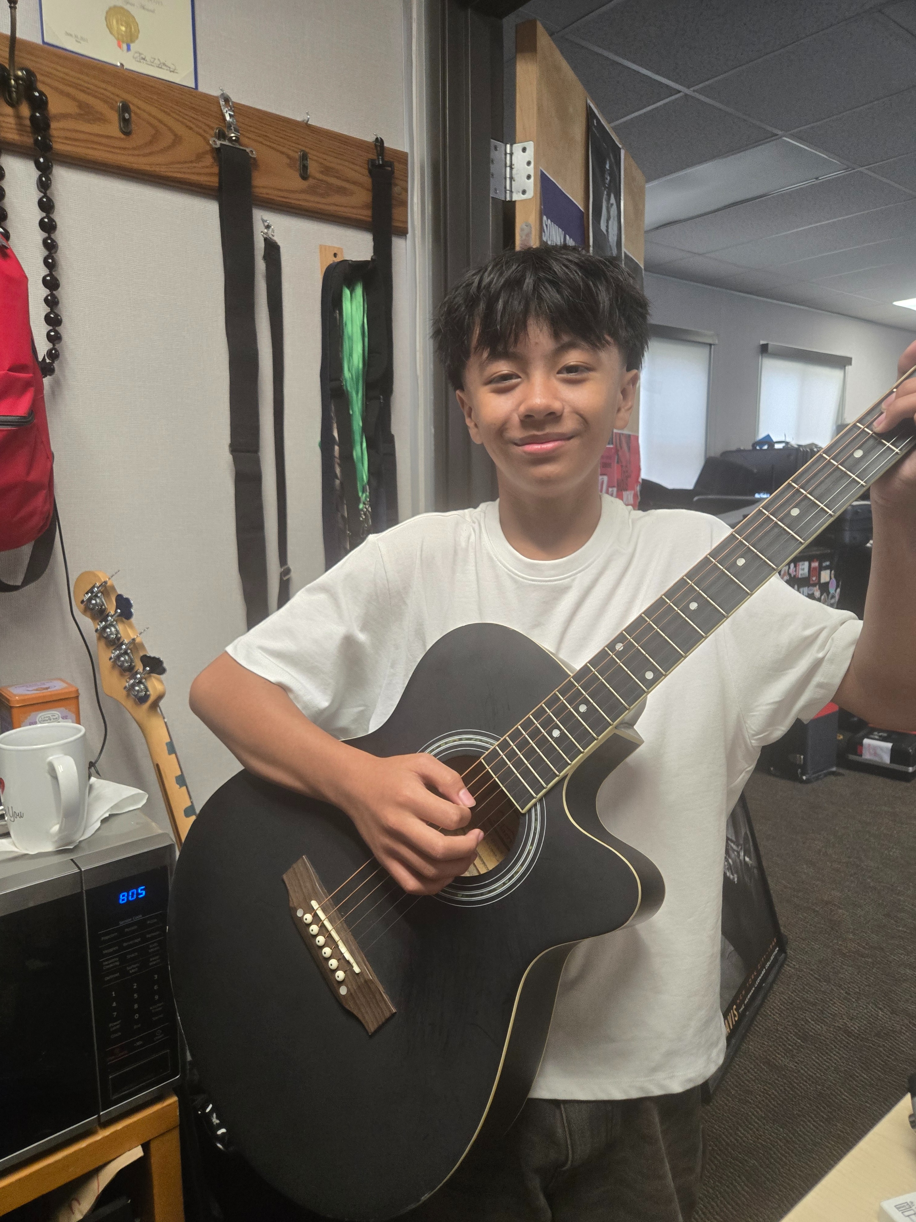 Hello, my name is Mr. Reza and I teach at Zamboni Middle School in Paramount, California. I have the pleasure of teaching music, and I am blessed to have one particular student who has been developing into a very accomplished guitarist. Zeus Frias is a seventh grader that I met last year in my beginning 6th grade guitar class. He has made leaps and bounds in his guitar playing, learning complicated solos and techniques that are way beyond a second year. He has performed countless solos, Metallica being his favorite band. He needs a guitar that can show off his great ability and send him into stardom. He lives in Bellflower, California, and goes to a Title One school in a low-socioeconomic community. Music is his passion, and as his music teacher, I would like to further his experience and reward him with a legitimate guitar—one that he will use forever.