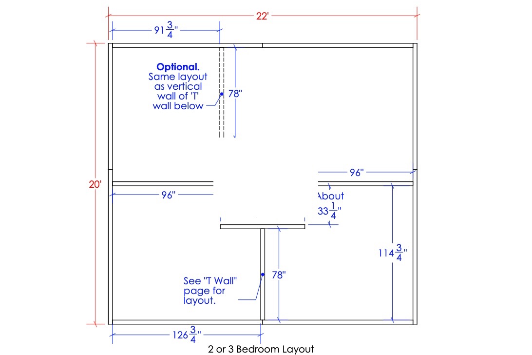 It will be built out of concrete bricks, with concrete floor and with an optional 2 or 3 bedrooms layout following the design below.