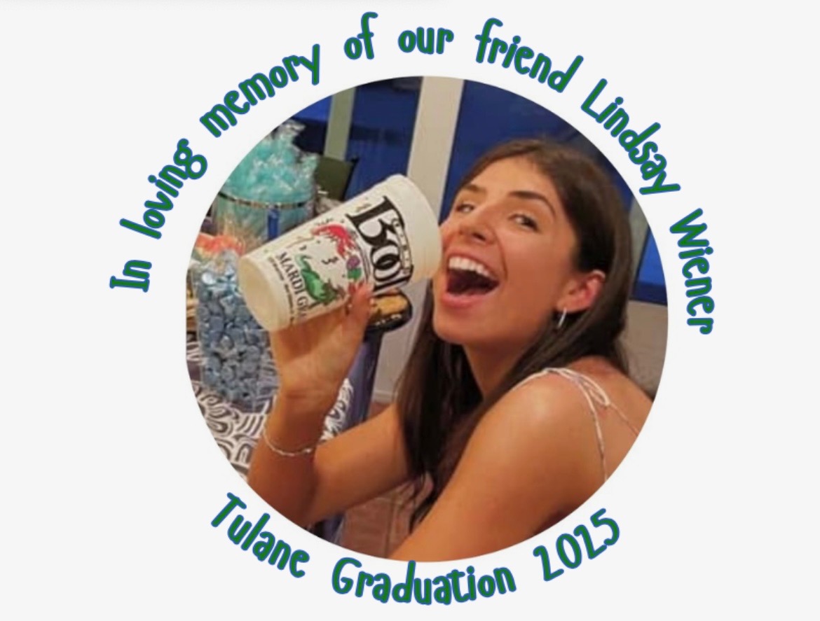 The donated funds will be transferred to the account of Lauren Erlichman, a Tulane student and one of Lindsay’s closest friends, who will facilitate the donation to Tulane University. Any remaining funds will be contributed to Lindsay’s memorial fund, also established at Tulane.