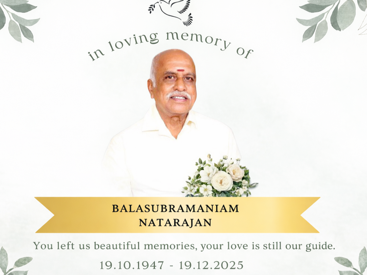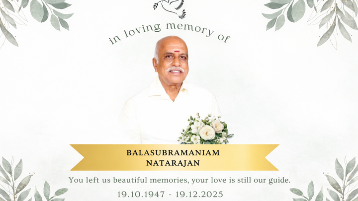 With deep sadness, we share the sudden passing of our beloved Uncle Balasubramaniam Natarajan in Melbourne, Australia. Our friend, Vinutha’s father and Vinod Moses’s father-in-law—a loving father and cherished family elder whose wisdom, kindness, and generosity touched many lives.