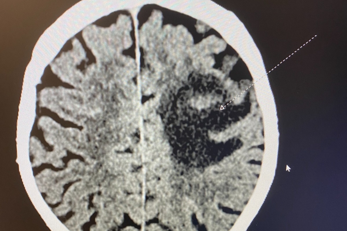 The diagnostic CT scan of one of the larger tumors on Dad's brain.In the blink of an eye, my father had gone from having many years ahead of him to a terminal diagnosis with possibly a year to live with treatment. With the help of my sister, we have since brought him back to Bend, where he lives with my husband and I in our one-bedroom apartment so that we can care for him full time as he undergoes aggressive treatment that takes a massive toll on him.