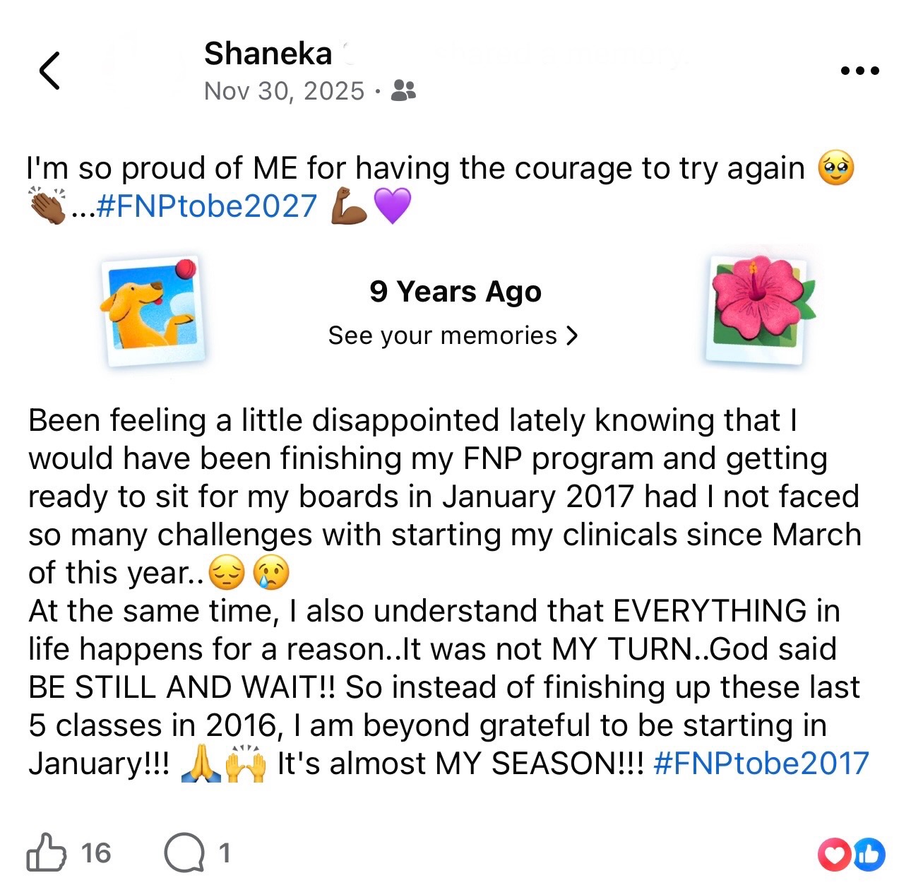 She grew into a woman of resilience, intelligence, and quiet determination. By 18, she had already begun her journey in nursing, taking courses in high school and continuing her education to become an LPN, then an RN, and eventually earning her Master’s in Nursing. She has dedicated her entire adult life to caring for others.