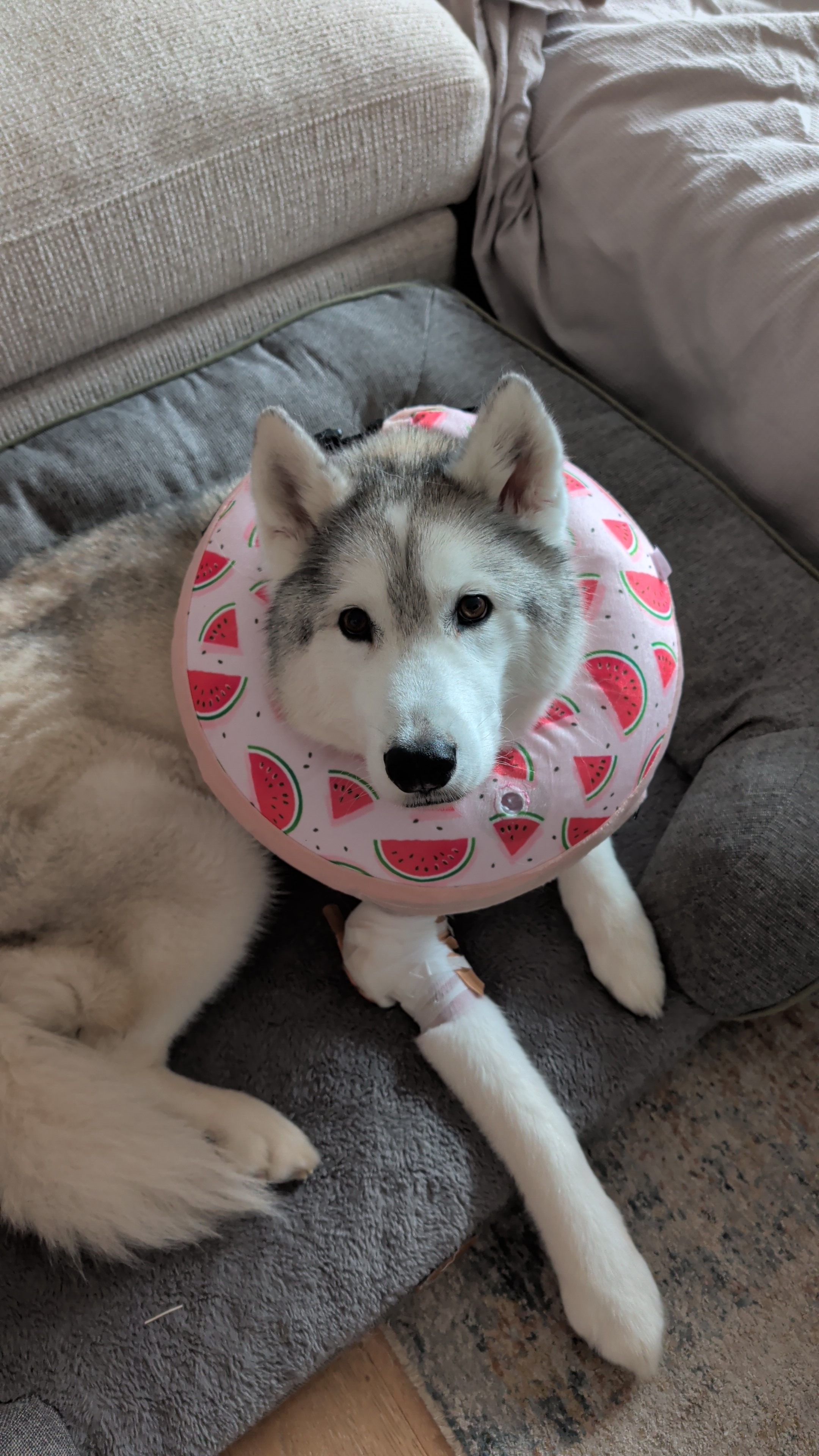 Hi, it’s me, Pasha. Lately I’ve been a bit more quiet between all the vet visits, but when I do howl or talk, it’s my way of telling my family I’m still here, still fighting. I’ve been diagnosed with Soft Tissue Sarcoma, and even though it’s scary and I don’t always understand everything happening around me, I’m not giving up. I want to get through this surgery so I can come back home and melt into the arms of the people I love most.