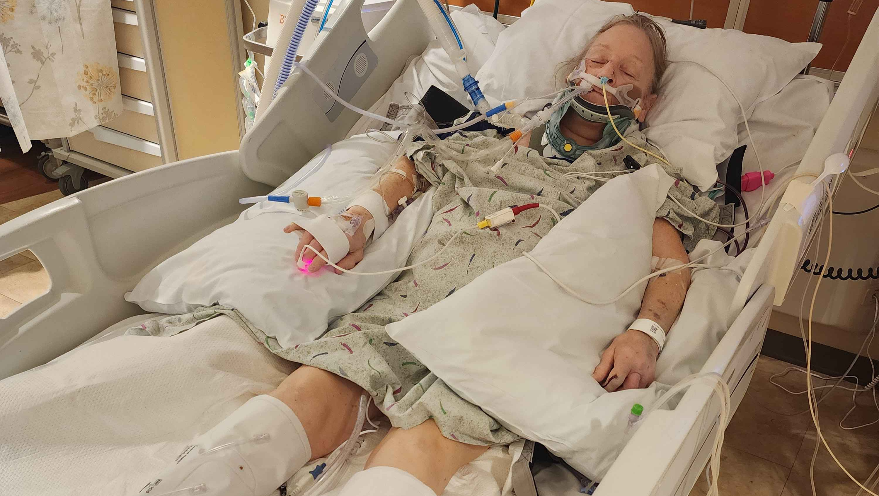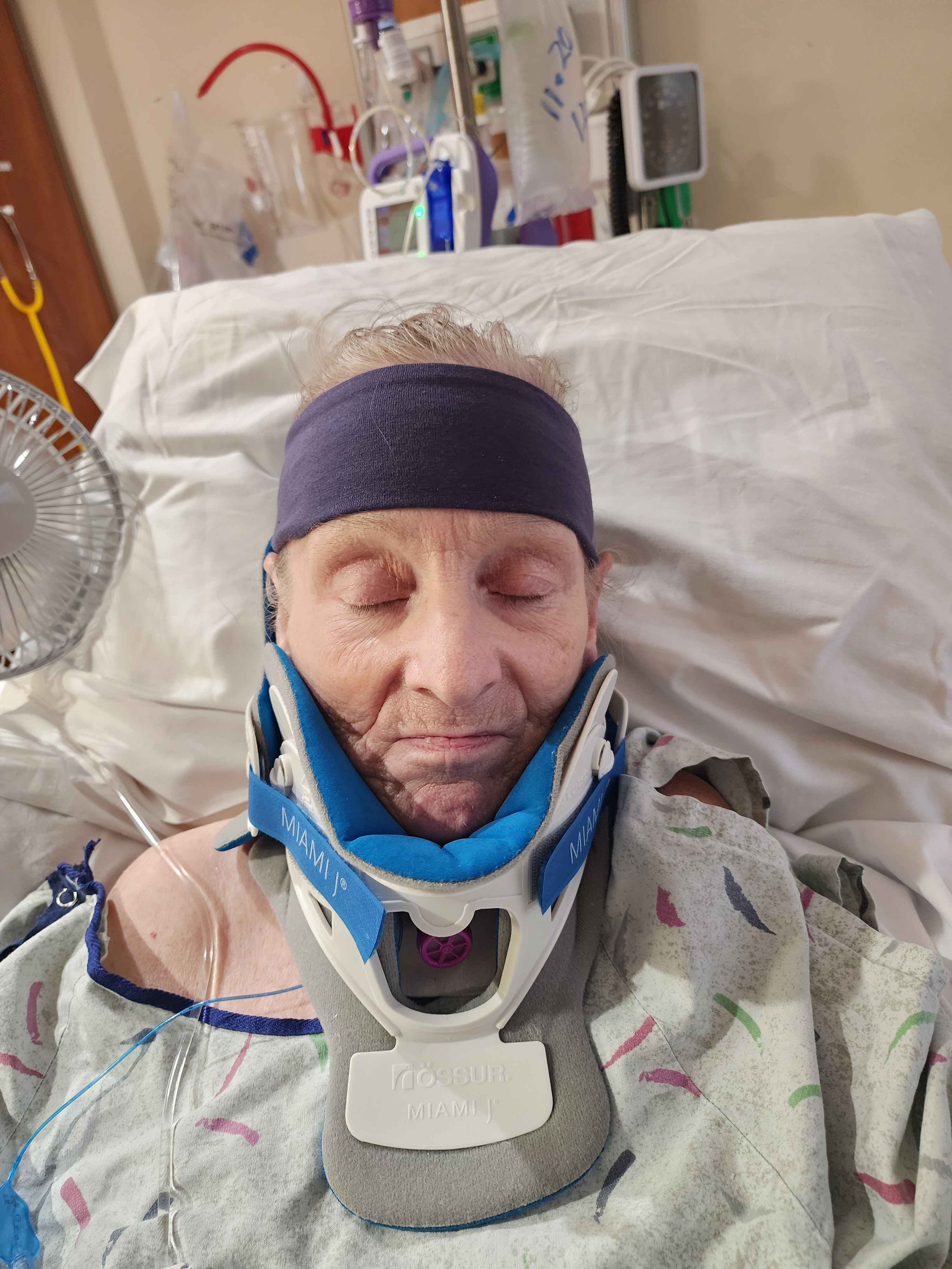 To our dismay, my mom had a broken neck. Her C3 was broken clean through. While her spinal cord was not severed, it was definitely damaged. Potentially, forever. She is currently a quadriplegic and unable to move anything beneath her neck. We have been told several times it is likely permanent, but miracles happen. She received a tracheostomy (a hole in her throat) and has been on a ventilator ever since.