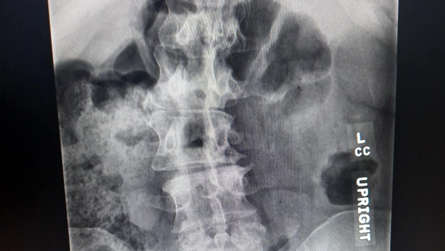 dextroconvexed curvature of the lumbar spine seen on the