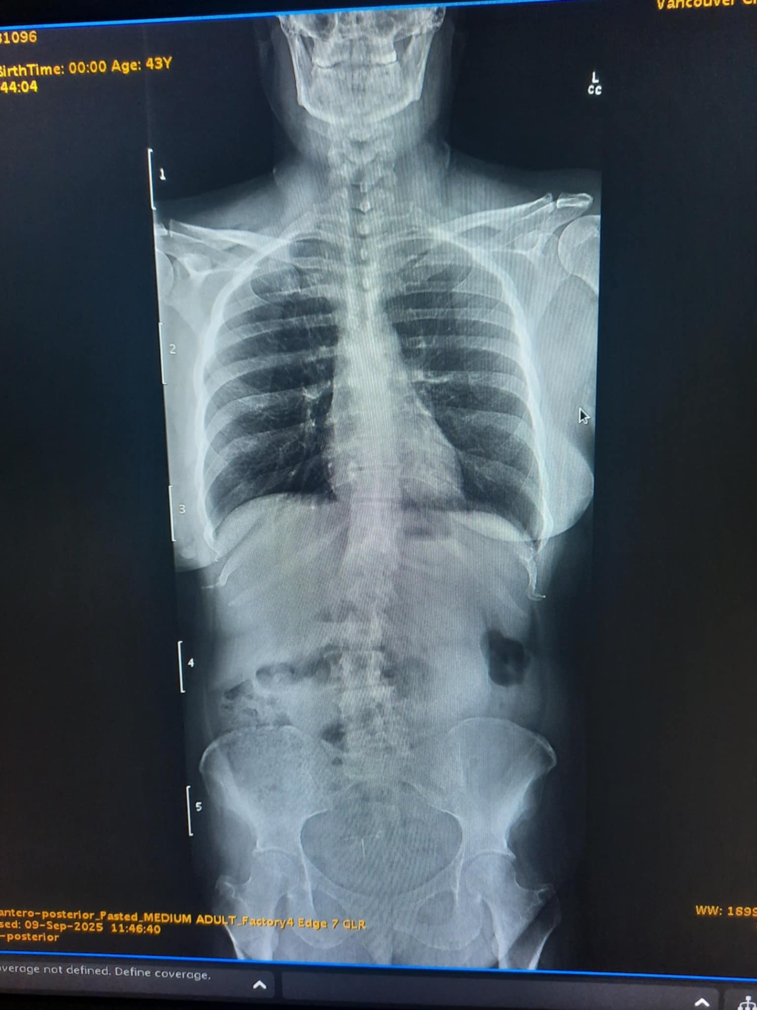 XRay indicates Double Curve (S-shaped) Scoliosis