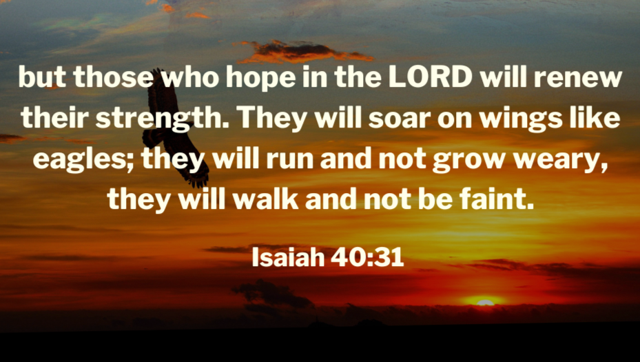 “But those who wait on the Lord shall renew their strength; they shall mount up with wings like eagles, they shall run and not be weary, they shall walk and not faint.”
