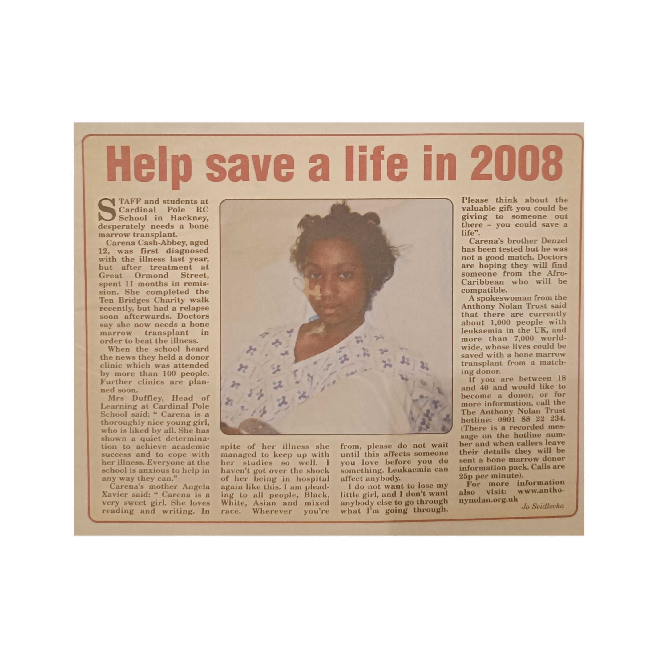 We launched a public appeal to find a bone marrow donor — you may even remember seeing her story in the local news. Despite overwhelming support, no match could be found. Eventually, Carena underwent an experimental stem cell transplant using her own blood. It was a brave and risky decision, but it saved her life.