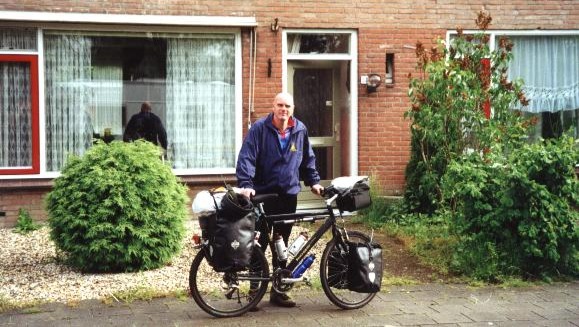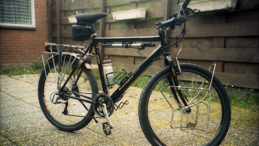 As time passed, I needed something more robust when I started my ideas of cycling in Asia in the late 1990's which were given to me by and English guy in north Pakistan. He cycled the Karakoram Highway on dope, that is he was all the time stoned. I thought if he can do that being stoned, I can do that sober. In the rest of my backpacking trip of that year I developed a full scale plan to cycle Amsterdam to Shanghai and when back I bought a Koga Miyata World Traveler, at that time the very first, the photo below is that very same bike just a few weeks after I bought it in 1999.