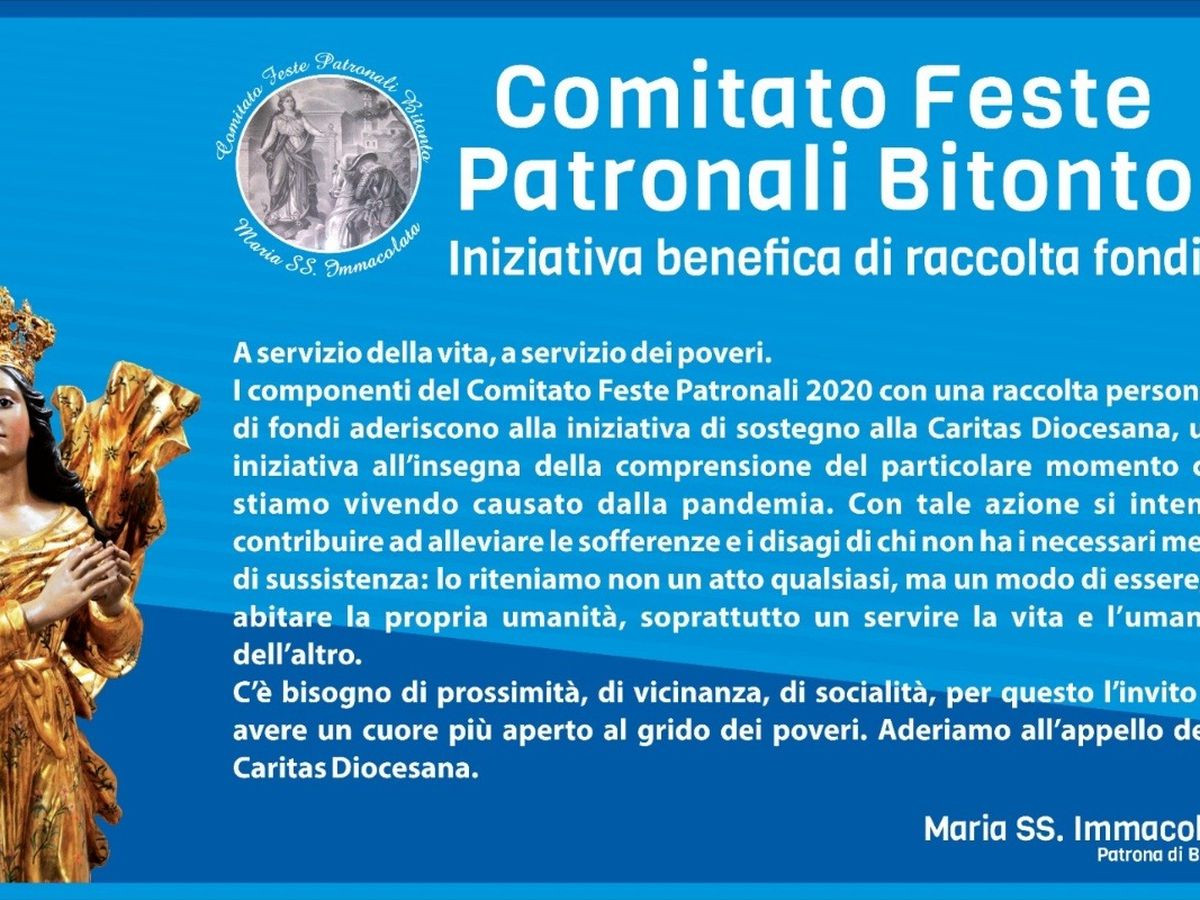 I componenti del Comitato Feste Patronali 2020 con una raccolta personale di fondi aderiscono alla iniziativa di sostegno alla Caritas Diocesana, una iniziativa all’insegna della comprensione del particolare momento che stiamo vivendo causato dalla pandemia.