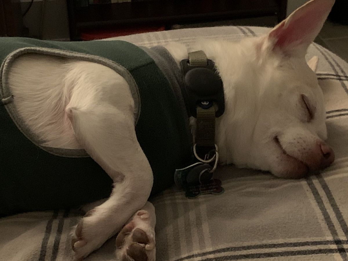 On the other hand, this is Benzo, our little man who was diagnosed last year with IVDD, a kind of vertebral disorder that some dogs suffer from, but which so far we've been able to manage without surgery. He's a Chihuahua/Rat Terrier mix, and he was supposed to be a therapy dog but he turned out to be his own little bundle of trauma responses. He gets away with everything because he's adorable and clever. You can see more of him here on Bluesky .