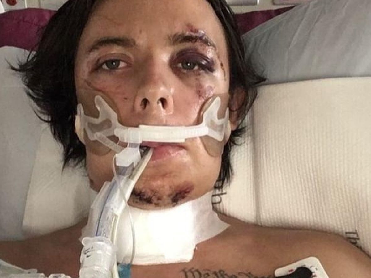This past weekend, on July 18th, “Thad” was attacked by two thugs while sleeping in his car on a native american reservation. These men broke a car window, hit his head, slit his throat, stomped on his face repeatedly, slit his throat again and left him for dead in the desert. He bravely played dead until the attackers drove off with his car, and then wrapped his jacket around his neck to stop the bleeding. He walked miles barefoot through the desert like this until he found help and was then rushed to the hospital.