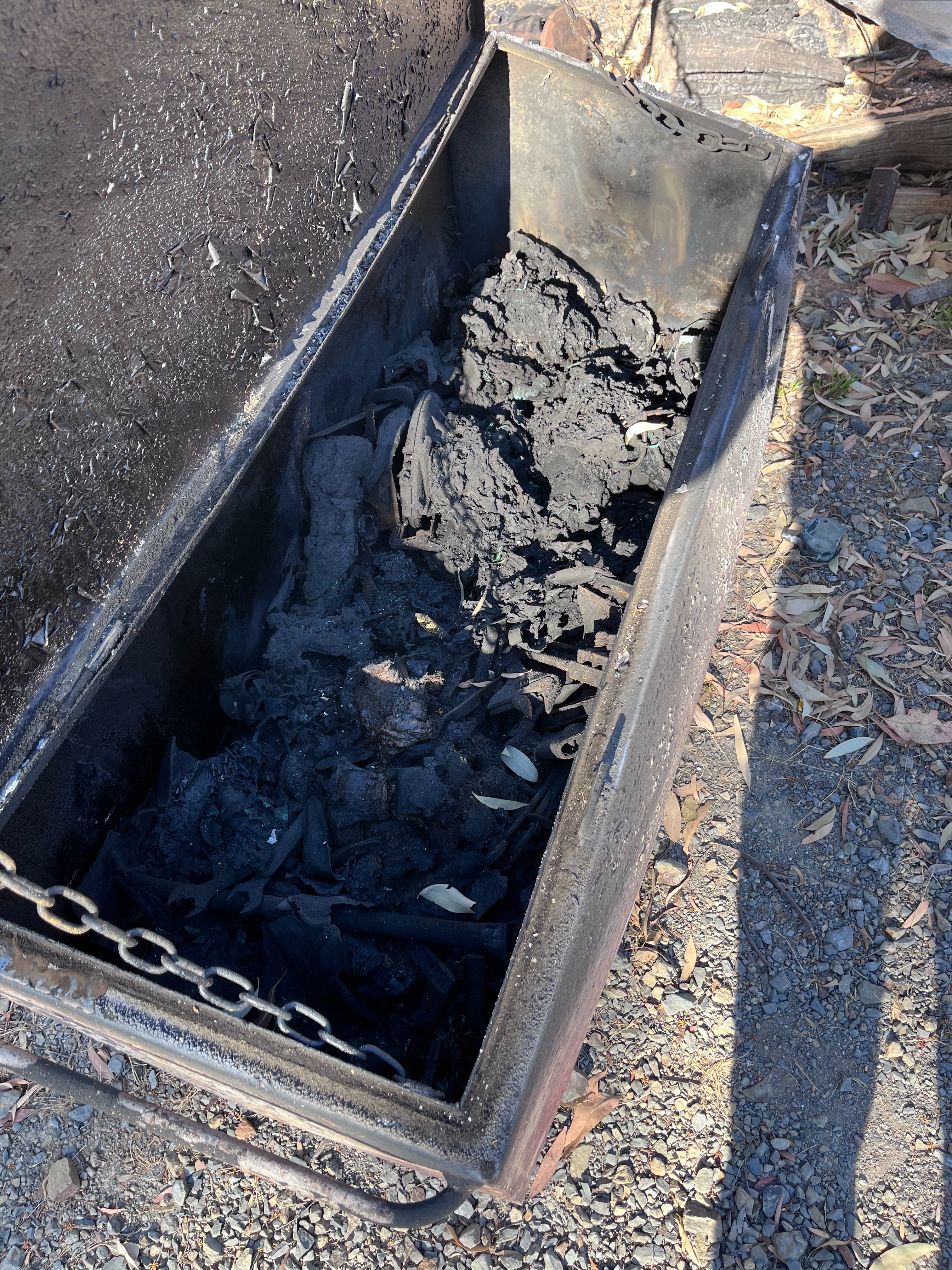 The shed and its' contents didn't survive the fire. Our property is somewhat underinsured and didn't cover the contents of the shed. This was a devastating blow for Oscar, being a young man not long out of his apprenticeship. It took him five years to save and collect all the tools needed to continue his trade to the approximate value of $12,000.