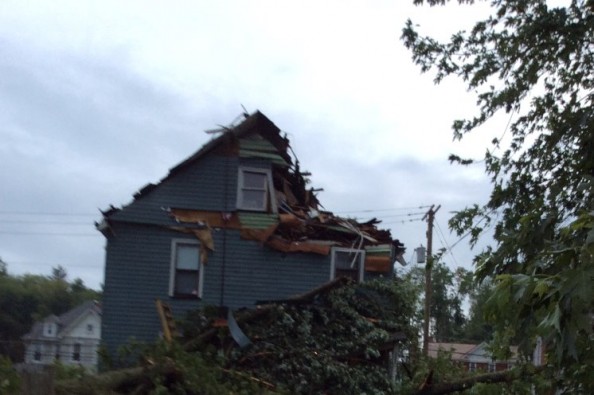 As many of you are aware Stacie came home to a horrific site on Wednesday evening. A storm ripped through Lisbon Ohio with heavy winds and hail that brought down trees throughout the neighborhood. The trees damaged many homes and Stacie's was one of them. The picture says it all. Unfortunately, due to circumstances out of their control, the house wasn't insured and now this is their responsibility.