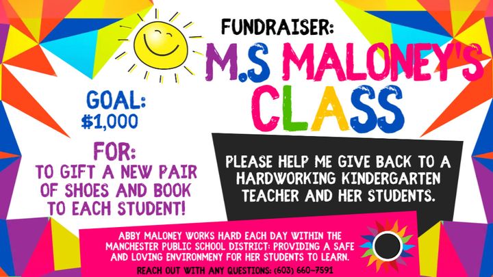 I'm aiming to raise $50 per student (there are 18 students total in her class). With this budget, I'd be able to purchase a pair of new shoes and a reading book for each student. I'll be giving these gifts to Ms. Maloney to give to her class.