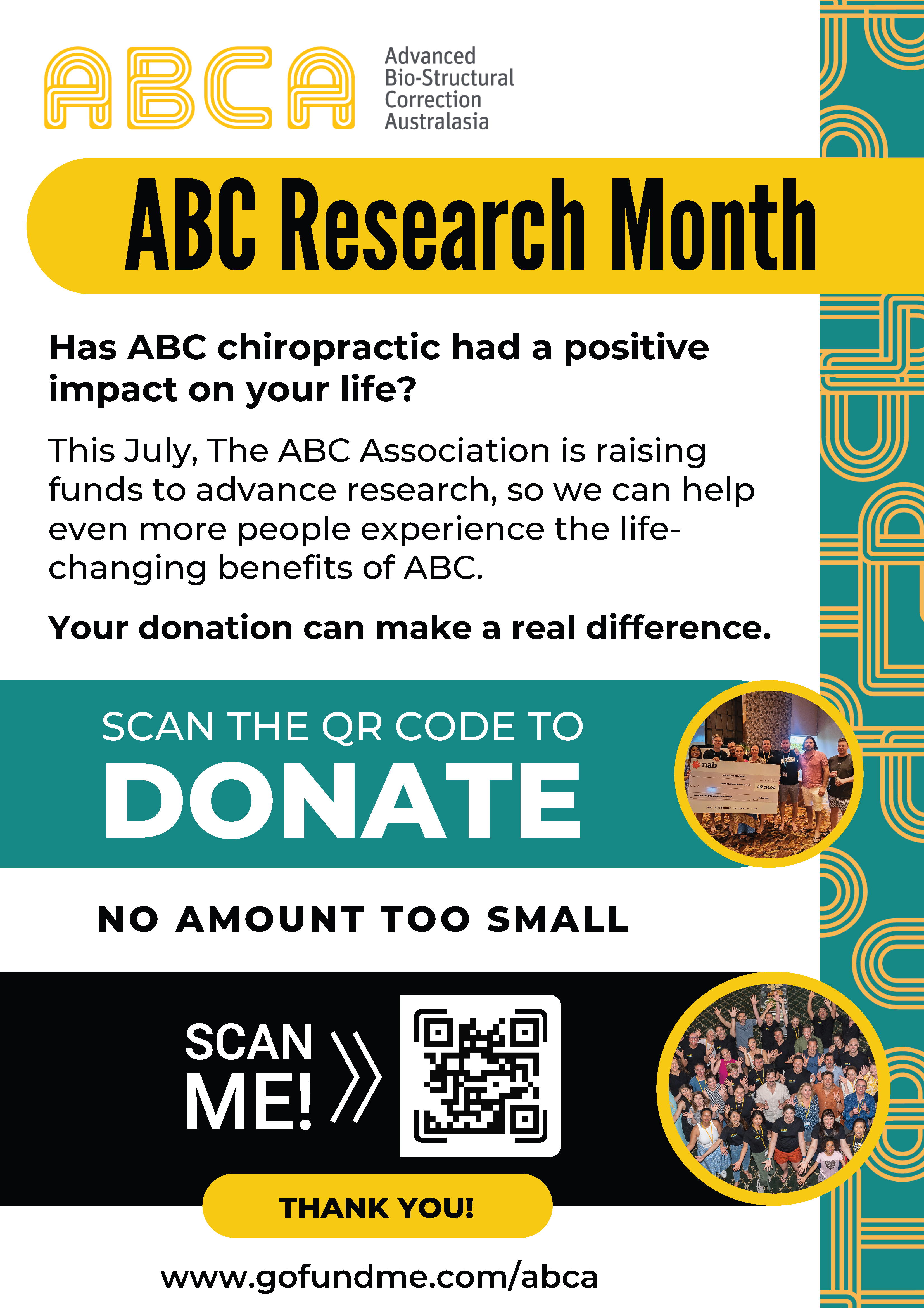 Each year Advanced Biostructural Correction Australasia (ABCA) dedicates the month of July to raising funds to further research into the ABC Chiropractic Technique.