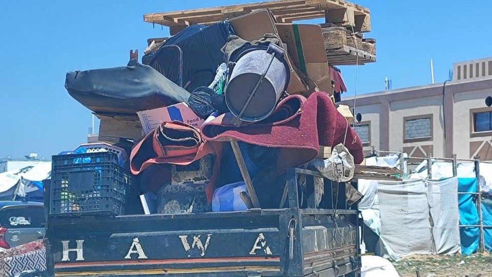 We were displaced from Al-Nuseirat to the city of Deir al-Balah in the central Gaza Strip after the army raided our area and destroyed our house. We lost our work and our ambitions were killed.