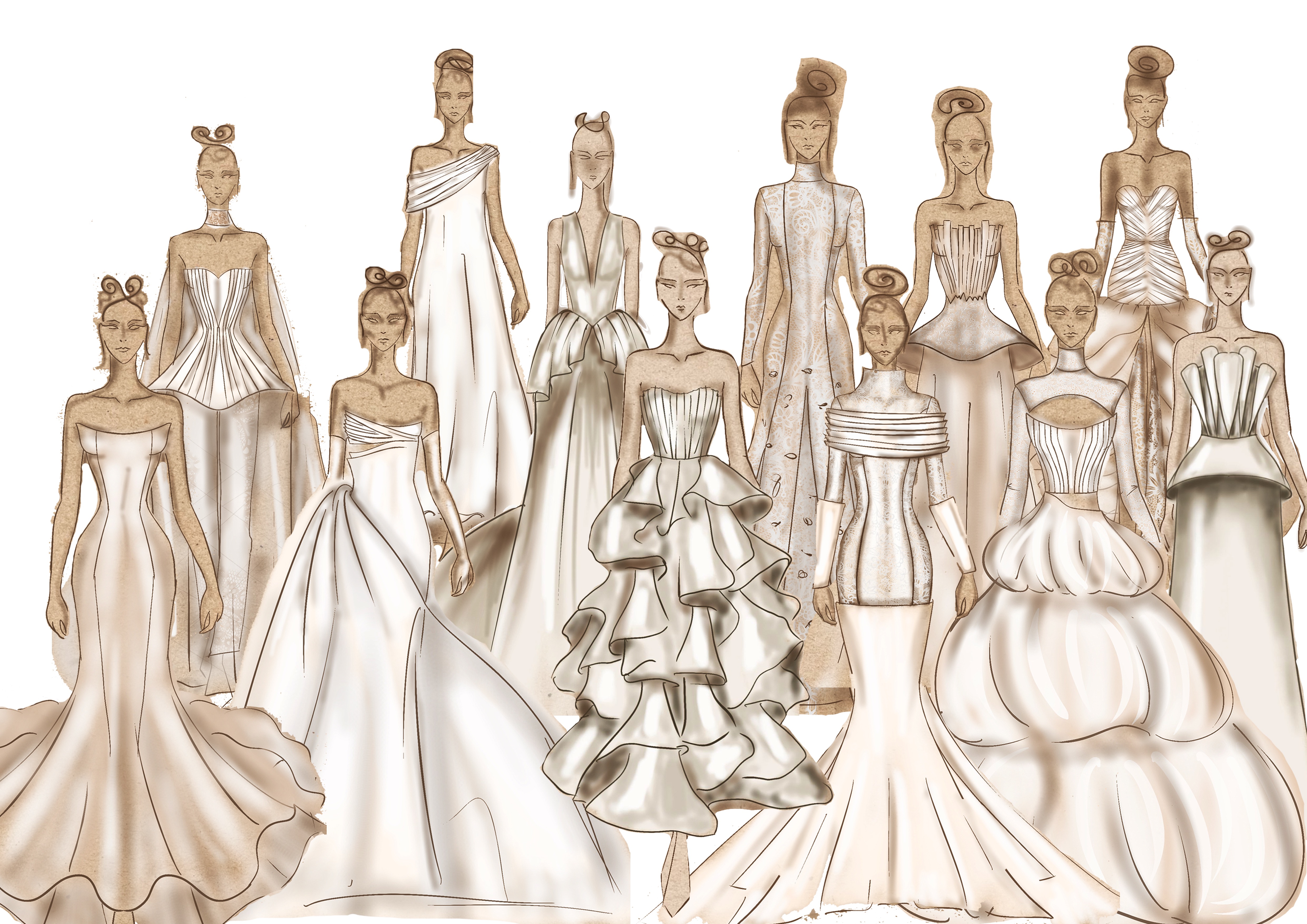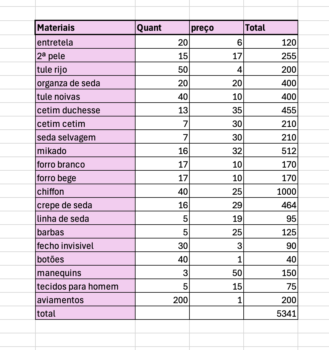 Segue fotografia da coleção de noivas que projectámos, a foto do vestido premiado na ExpoNoivos e a tabela de materiais a adquirir, bem como os respetivos preços.