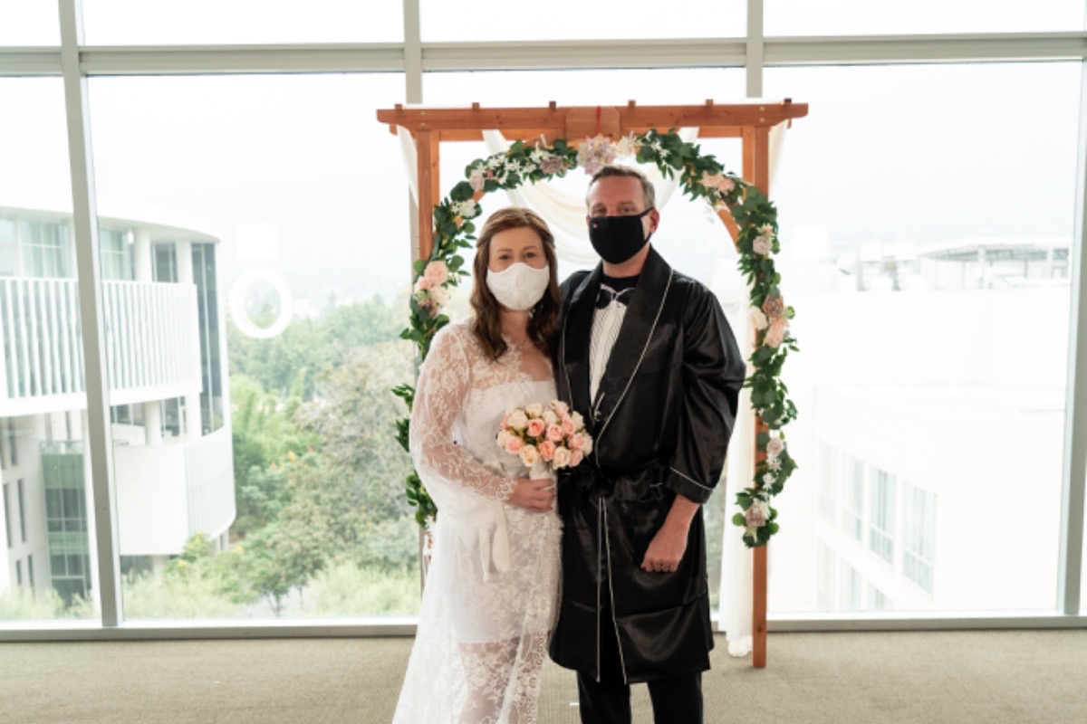 She decided that she was still going to get married on her planned date, 10/10/2020, even though she would be right in the middle of one of her hospital stays to receive an intense round of chemotherapy. Some amazing people at the hospital planned the whole wedding and decorated the lobby of the floor she was staying in. Her doctors let the nurses unplug her IV pole for the ceremony while her friends and family were able to watch her tie the knot on Zoom. This definitely was not the wedding she dreamed of when she was a little girl, but she was happy to have her husband and did not complain.