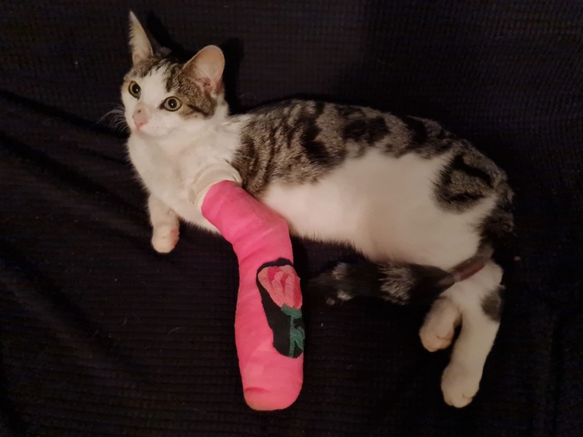 Our beautiful family cat escaped her cat run 6 weeks ago. After a long search she was found and taken to the Mowbray Vet. Unfortunately after a thorough check up from the vet we were advised that her front left leg was broken as a result of a gunshot wound as well as another gunshot wound in her backside and some damage to her tail.