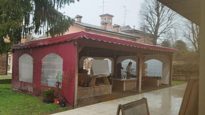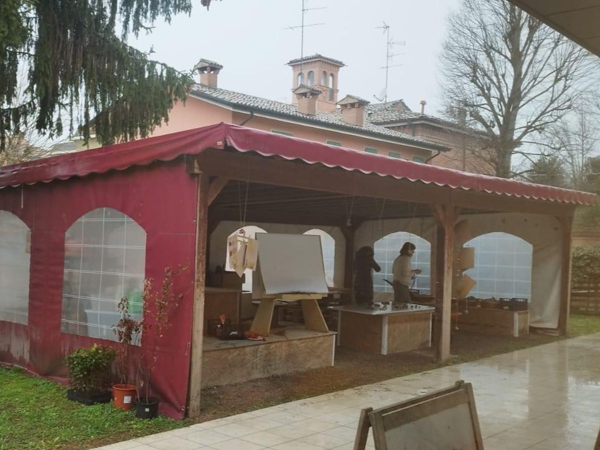 di una tensostruttura esterna di circa 9mt per 5mt, chiusa su tutti i lati e riscaldata, in modo da permettere ai nostri bambini di realizzare attività all’aperto e laboratori anche nei periodi più freddi, in totale sicurezza (la foto è esemplificativa di ciò che vorremo realizzare).