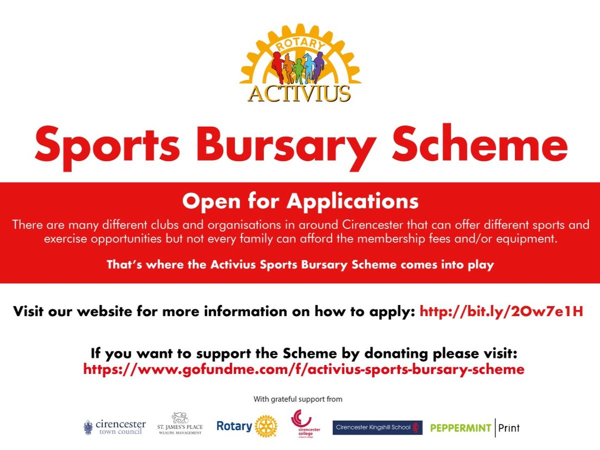 The Rotary Club of Cirencester love to see children and young people enjoying sports and exercise as part of a healthy lifestyle. There are many different clubs and organisations in around Cirencester that can offer something for everyone but not every family can afford the membership fees and/or equipment. That’s where the Activius Sports Bursary Scheme comes into play.