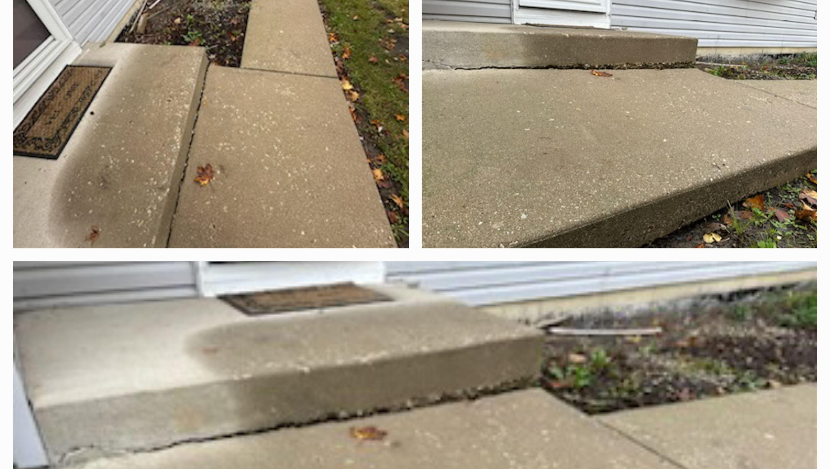 We have talked with several contractors and have found one that is able to do the necessary work to fix this unsafe entrance. He plans on removing the current concrete and pouring a new concrete slab with a larger platform that will be level with the door and add an ADA compliant ramp.