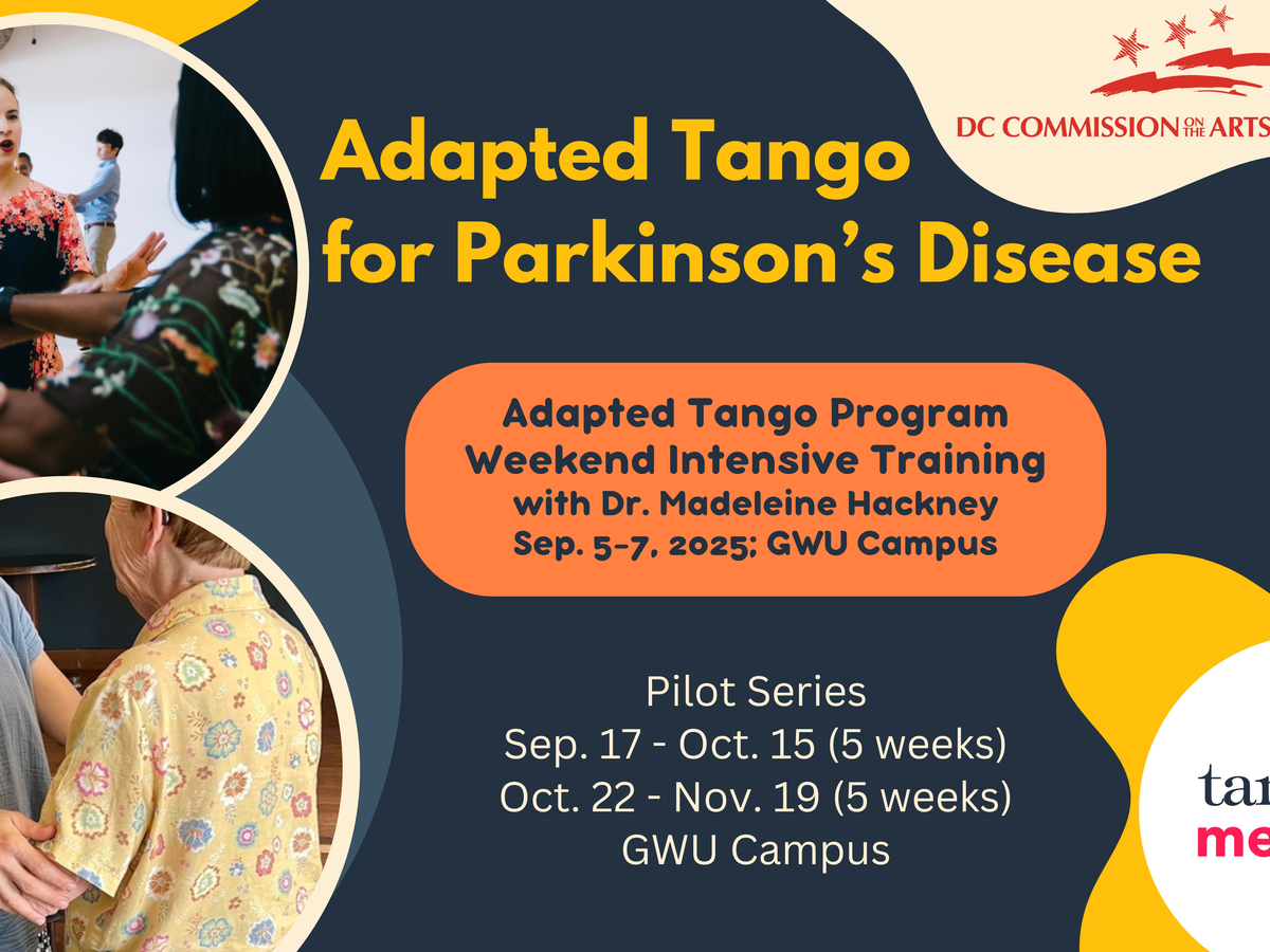 • Pilot two Adapted Tango Program series for people with Parkinson’s in DC in September–November. These adapted tango classes will be FREE for participants, who will receive support by volunteers trained in our Adapted Tango Program and safety protocols for working with people with Parkinson’s.