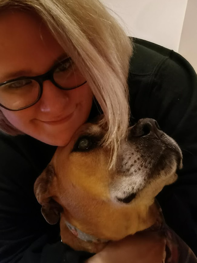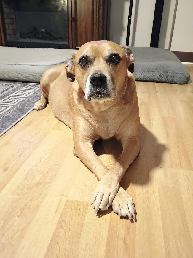 Ada is the sweetest dog you will ever meet. She charms everyone she crosses paths with. She's been a 'guest speaker' for projects while I was in college, participated in trunk-or-treats. She's food driven, loves to cuddle and watch TV (her favorite show is the Golden Girls) but she's been known to rip open a stuffed toy or two, and knock whatever you're holding out of your hand to get your attention.