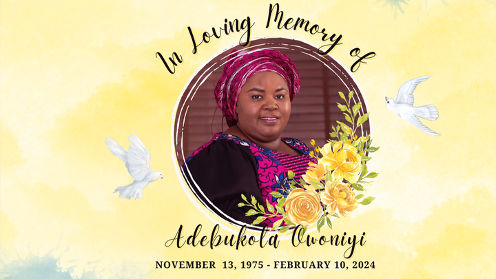 Hello, my name is Tamica Woodson Owoniyi and I hosting this fundraiser to help my sister in Christ, Adebukola Owoniyi. Adebukola is the mother of my 5 five step (bonus) children. Her children, Feranmi, Dunmininu, Michael, Misimi, and Gbotemi are all college or high school students. At the time of Adebukola's passing, she was on a visit in Canada with her oldest son. The children worked hard over the summer to help bring their mother to Canada, so hopefully they all would get to visit with her during this upcoming summer vacation. The four youngest children had not seen their mother in person since they came to America.