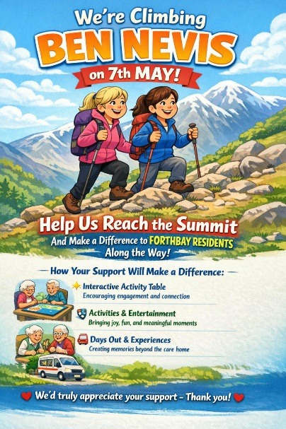 Myself and my colleague Michelle are set to climb Ben Nevis on the 7th of May and will be sure to allow everyone to follow our journey in aid of our residents.