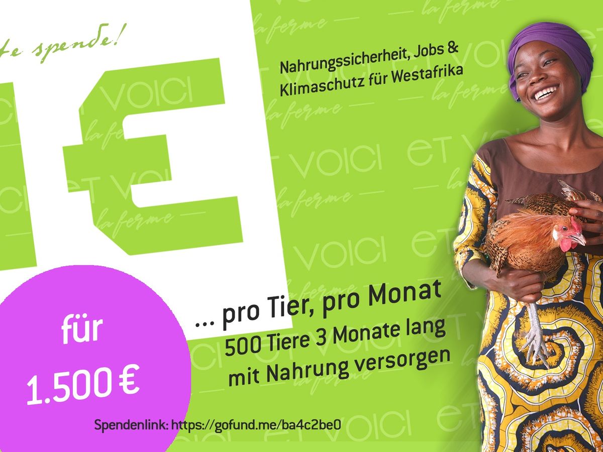 Bitte hilf mit Deiner Spende, dass es für die Tiere und die Farm weitergeht! Mehr Informationen zur Farm gibt es auf der Webseite https://et-voici.com. Alle Spender sind herzlich eingeladen, nach Bénin zu kommen und zu sehen, was mit ihrem Geld tatsächlich geschieht! Tausend Mal danke!