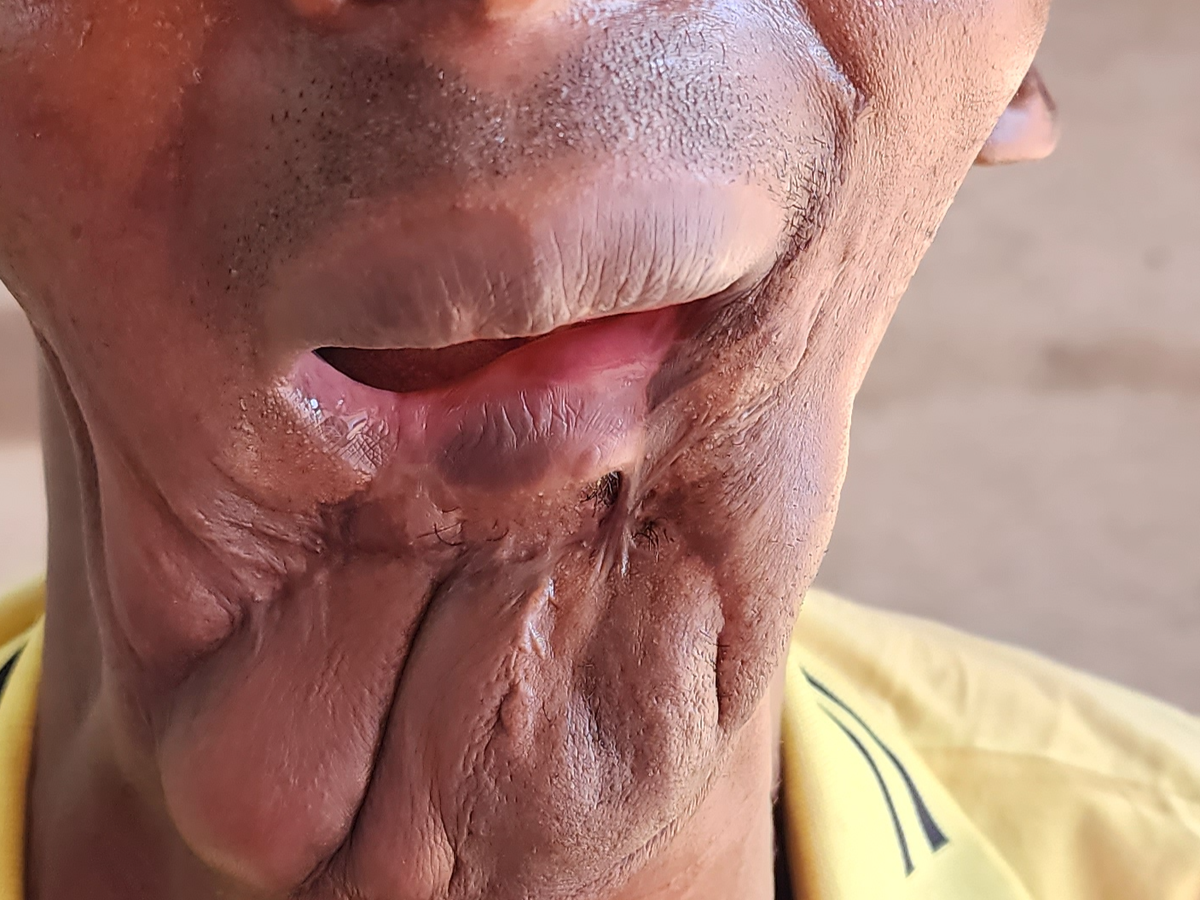 Today Vianney survives but his injuries are horrendous. Apart from multiple injuries to his body, including a smashed femur, shortened leg etc, he has no lower jaw so is unable to eat any solids, and must constantly hold his head back to prevent saliva running down his front. Vianney suffers frequent recurring infections, is in constant pain, and has difficulty walking and talking, yet still must earn a living for his family. Vianney’s story, photos and video are under a separate tab labelled “Vianney’s story” on our website www.MobileHealthService.au