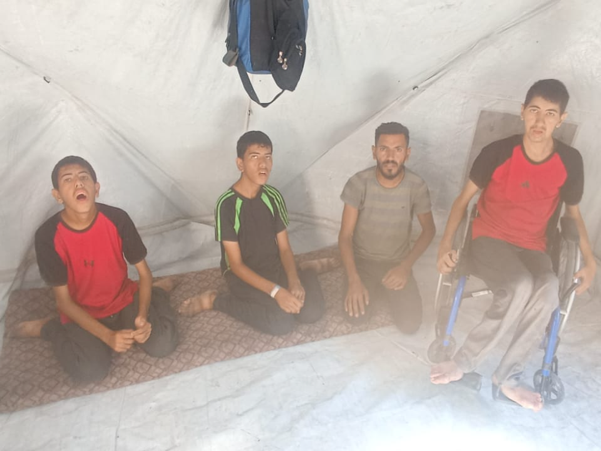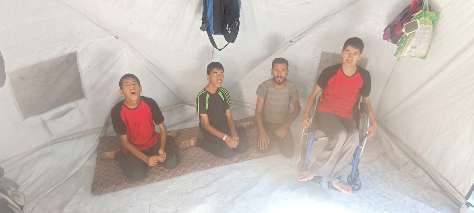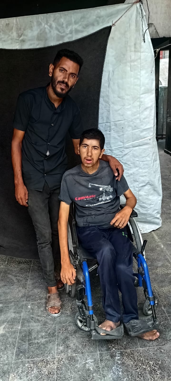 • Naser (20 years old) has severe brain damage, can barely walk or speak, and is unaware of his own needs. He often hurts himself unknowingly and requires constant physical support to eat, clean, and stay safe.