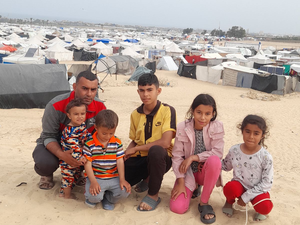 Then came the war—and a kind of running chronicle of what life there was like. The concrete floors his family slept on, the courtyard tents in the chilling rain, then in the desert; the waste stored in bucket; their moves from town to town, unable to carry clothes or food with them; the water truck mobbed by desperate refugees; his infant's illness from malnutrition—all recorded in photos sent in during the tiny intervals when the Internet worked, but which he sometimes had to walk a mile to reach. He is currently in Rafah, but that could change any day.
