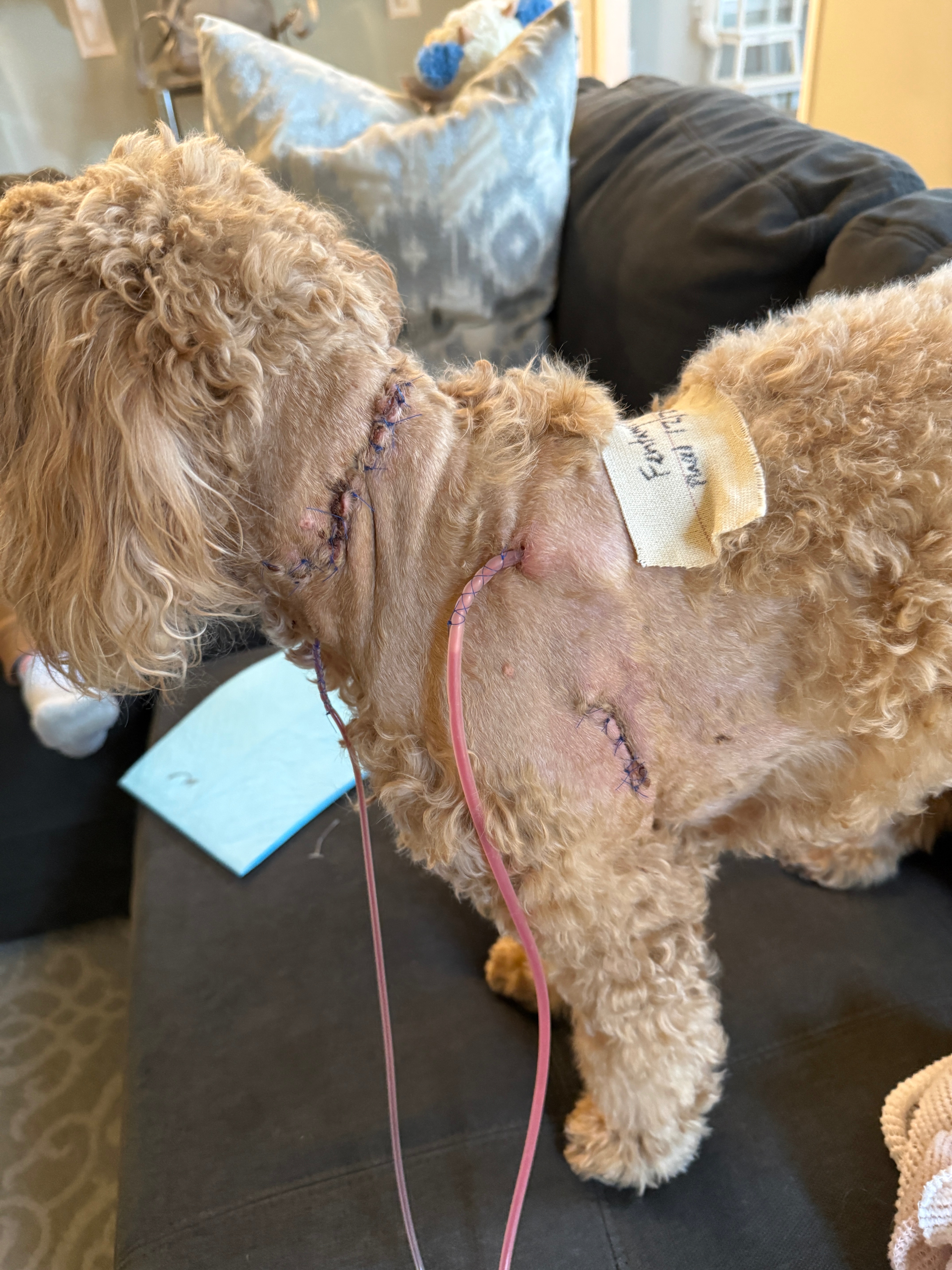 Hey everyone my friend Ashley Brown and her 5 year old son went through a tragic event on Christmas Day! They were walking there sweet dog Kingsley , when out of no where two pit bulls came up to them and attacked the dog . He has had surgeries to repair the the side of him and his neck they attacked . He has three broken ribs and draining tubes . He had a seizure today and back to the hospital . She is a single Mom and has spent all of her money to save her dogs life . If anyone can help donate towards medical bills and food for them that would be awesome! Thanks so much for considering to help this sweet family !