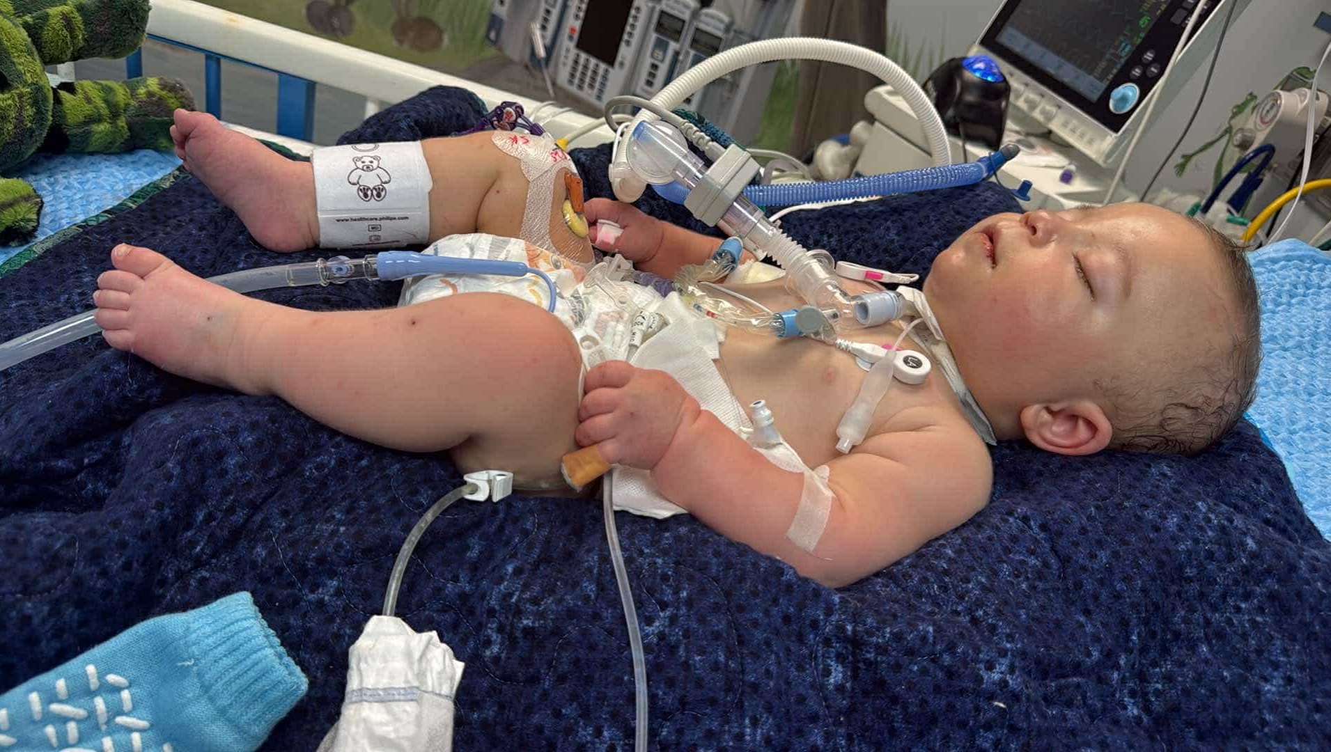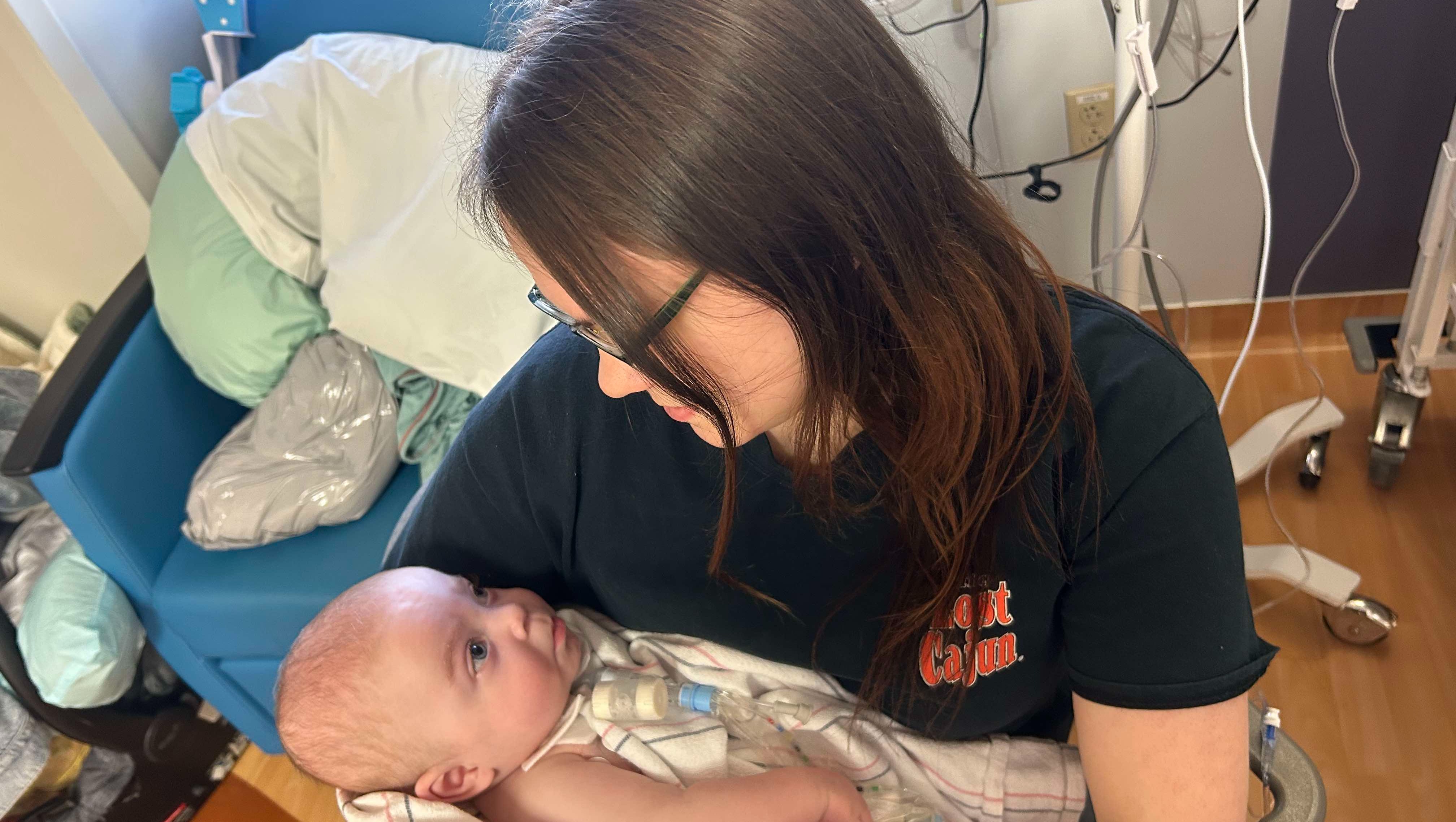sweet baby Jaxson being held by his mommy for the first time in 9 days!