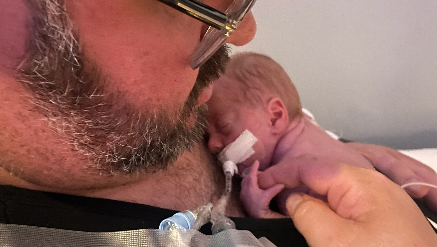 We had no idea when heading to the hospital that today would be so special. We were about 10 minutes away when we got a call from the NICU. When you see that number on your phone, you don’t know if it is just an update or if something is wrong. This time it was the doctor providing an update and then letting us know that she approved us for a skin to skin session. We were shocked because Olivia is still on two ventilators, but so overwhelmed with joy that we both immediately broke into tears.