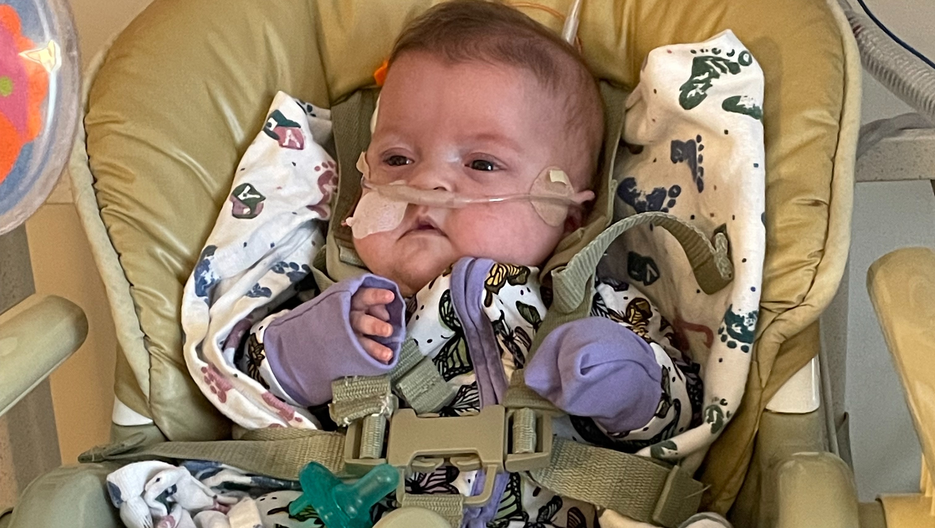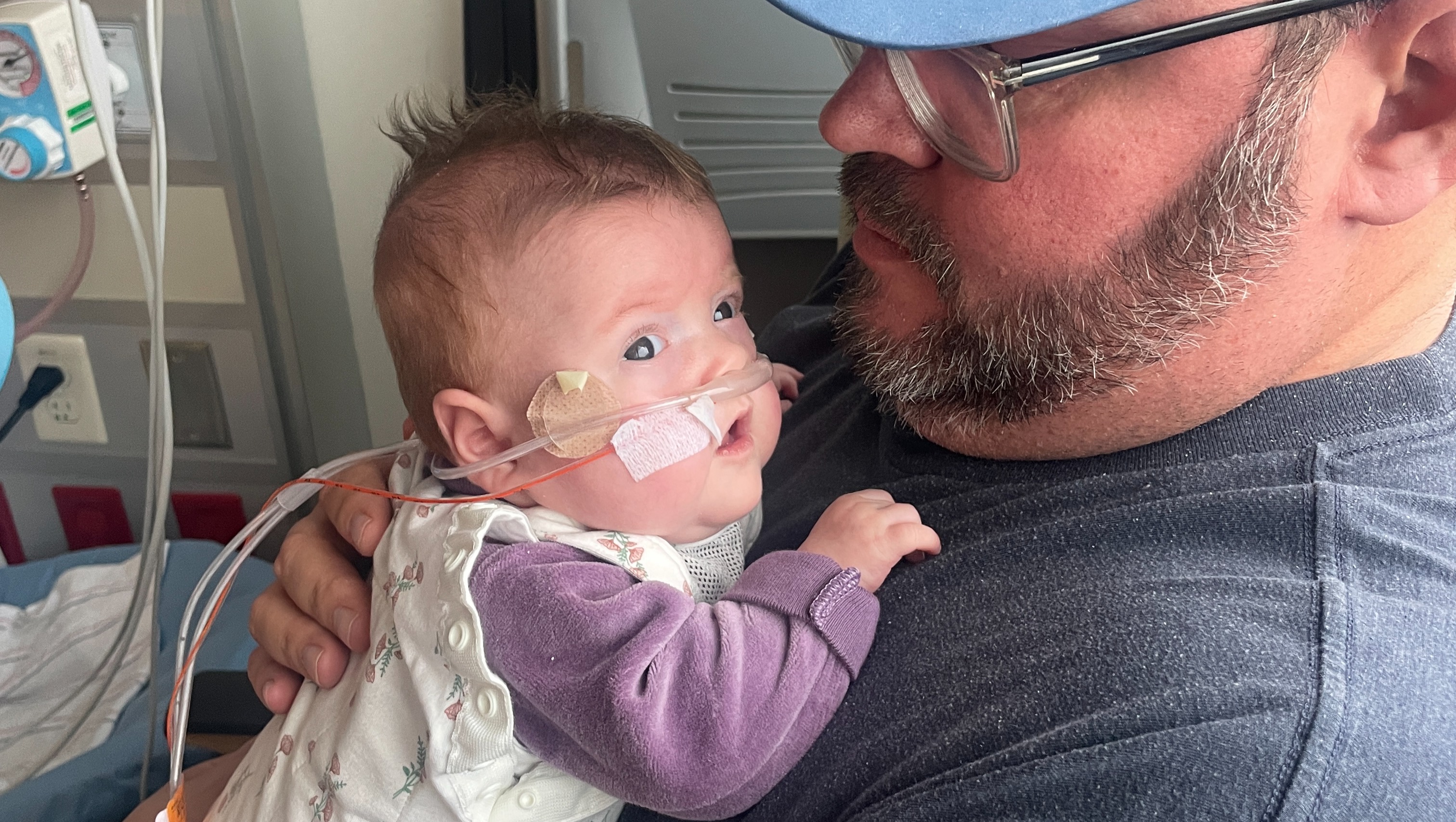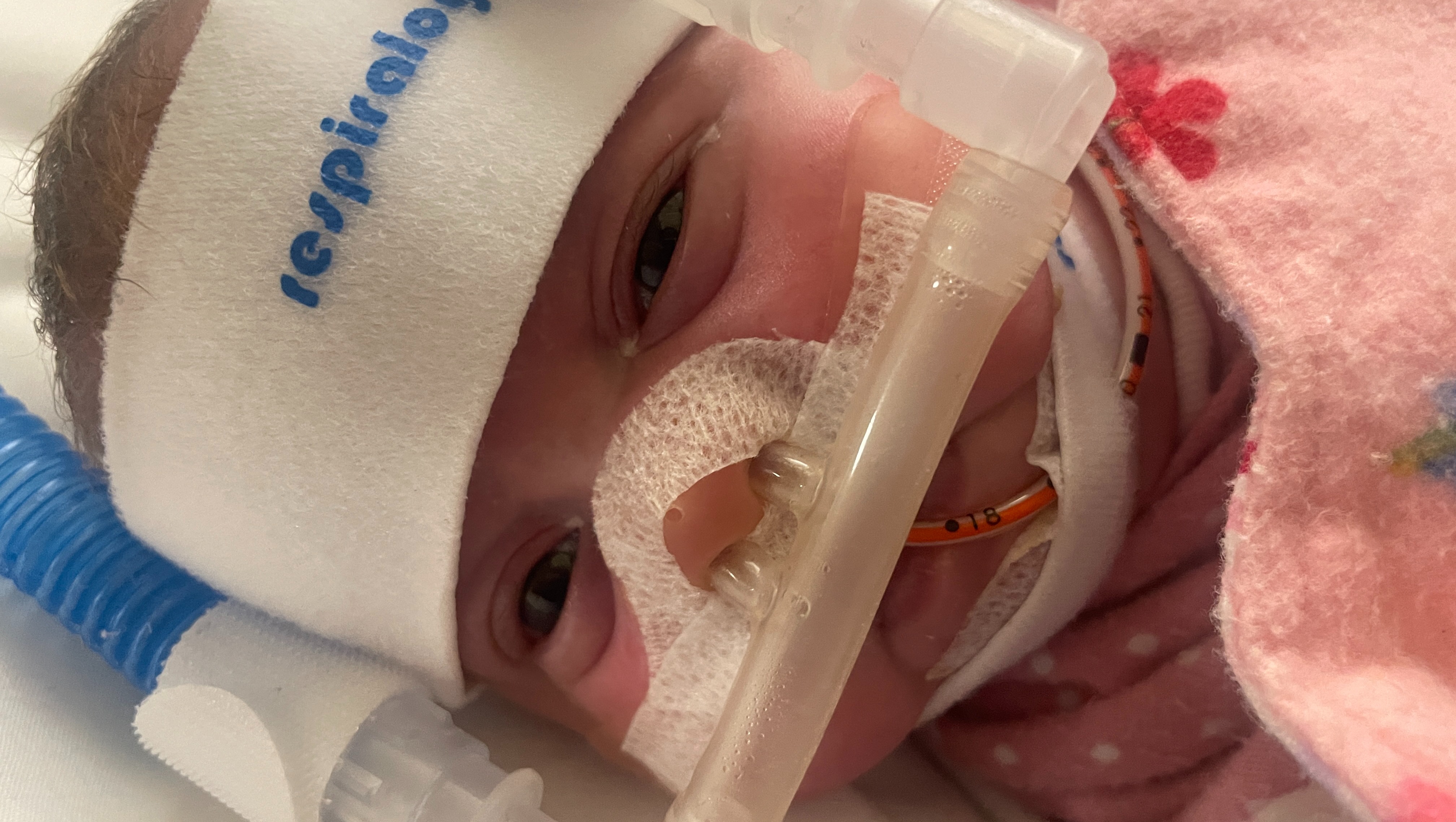 Her oxygen assistance is in the same place, but hopefully as she grows, her lungs will get stronger and we can wean more.