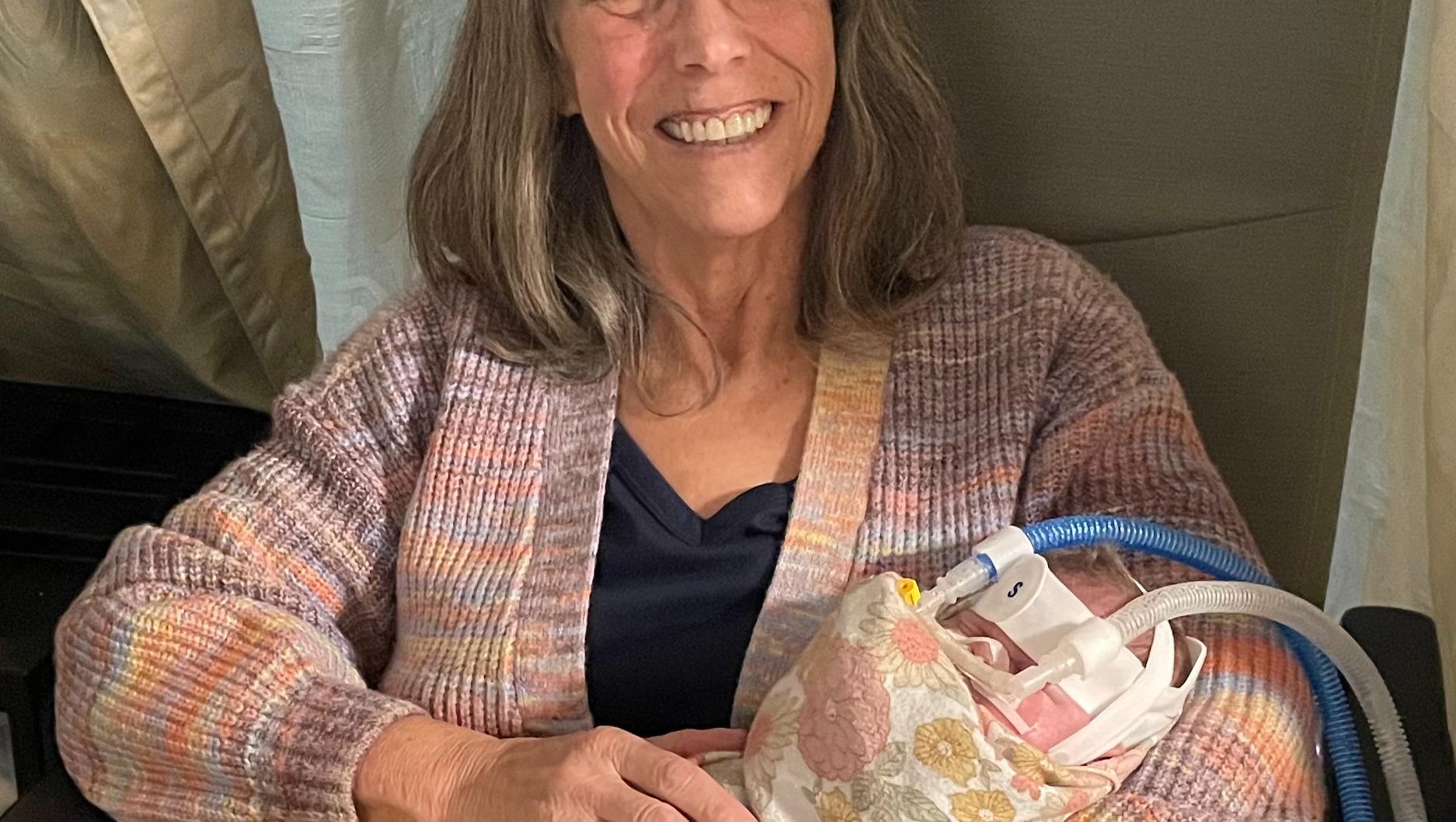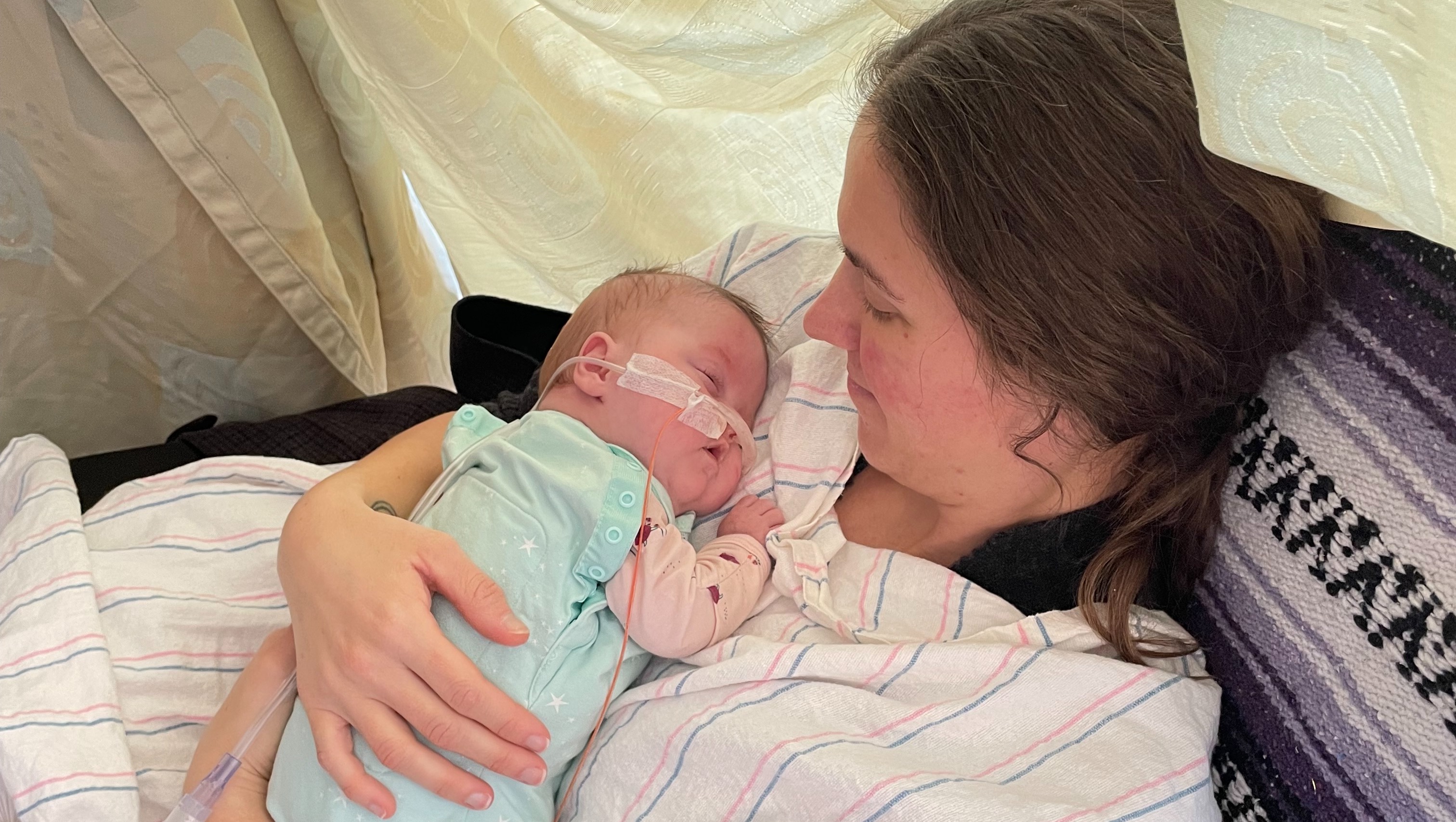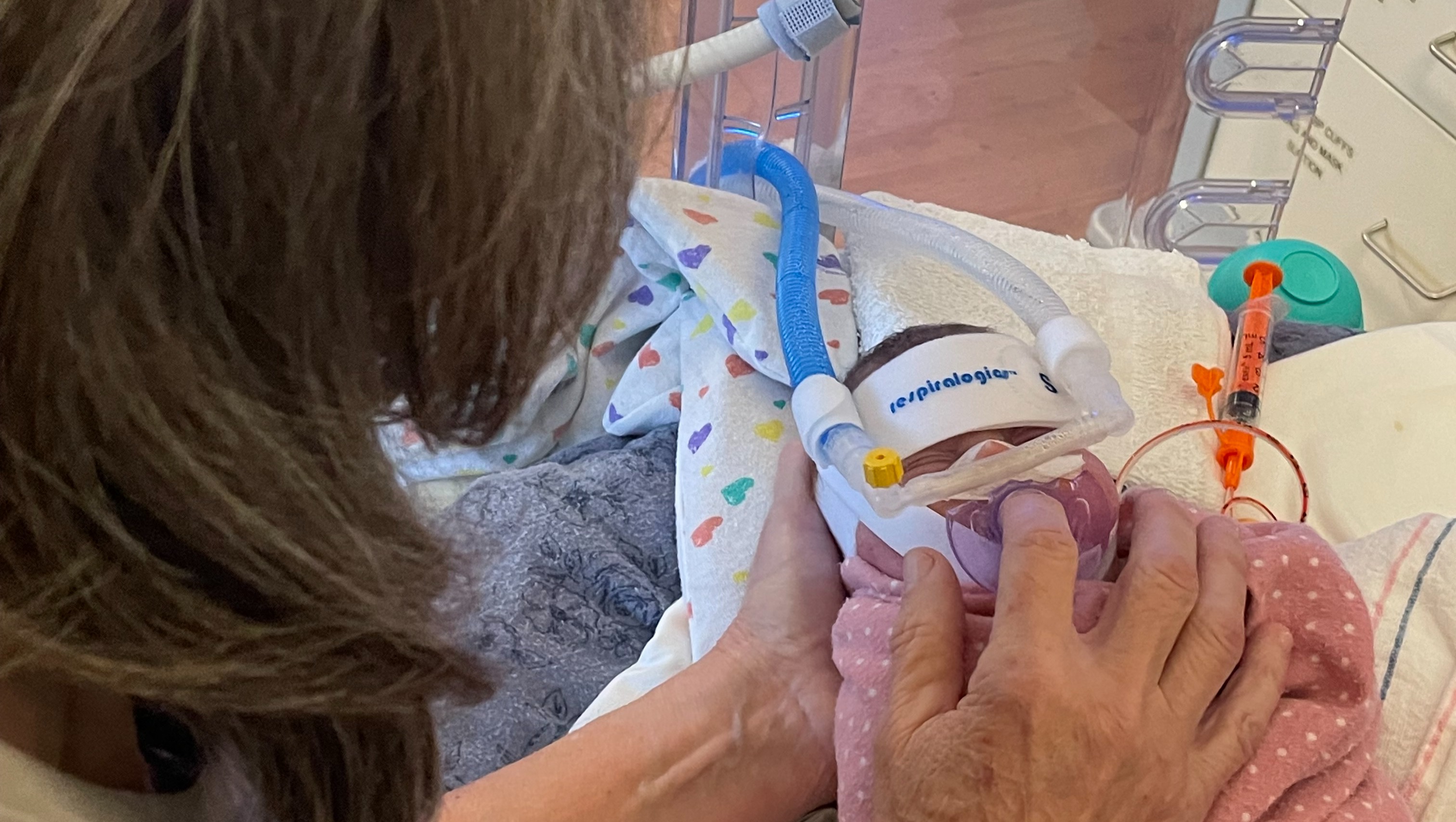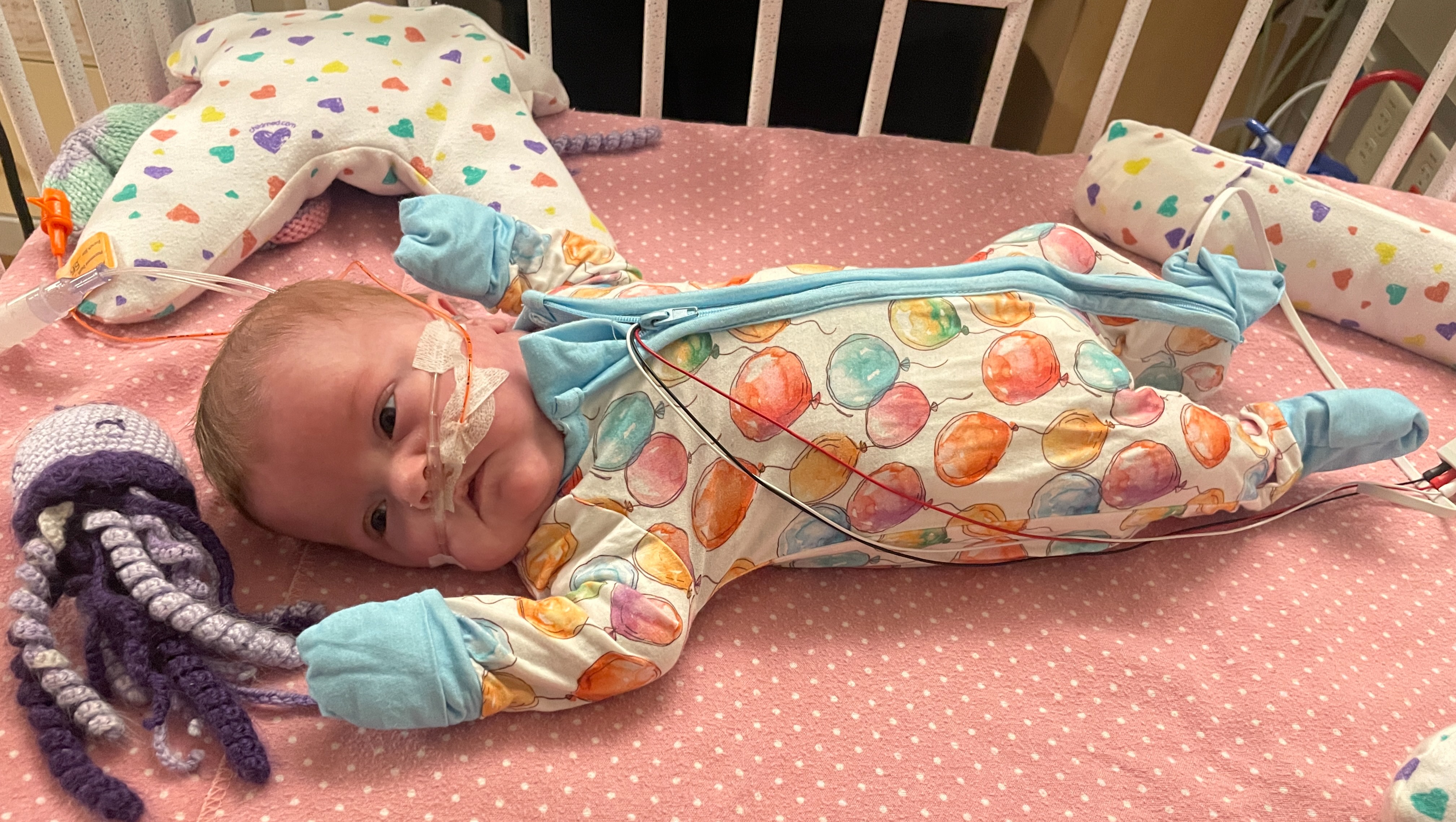Her oxygen assistance is in the same place, but hopefully as she grows, her lungs will get stronger and we can wean more.