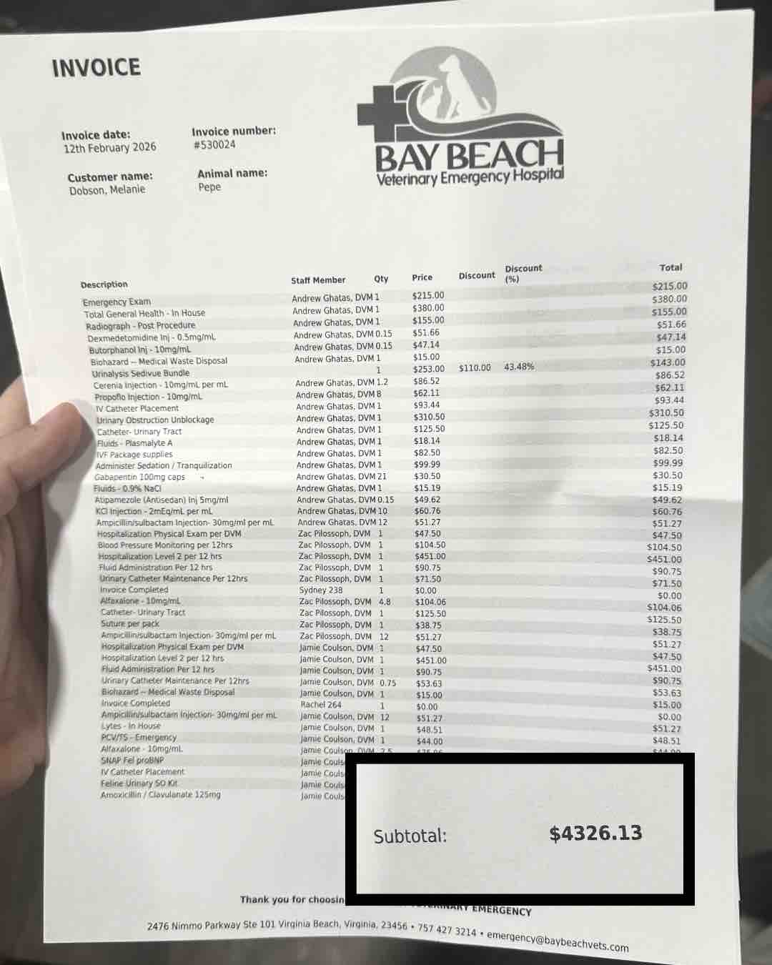 Thankfully, he is home and recovering but the total cost of his emergency care came to just over $4,000.