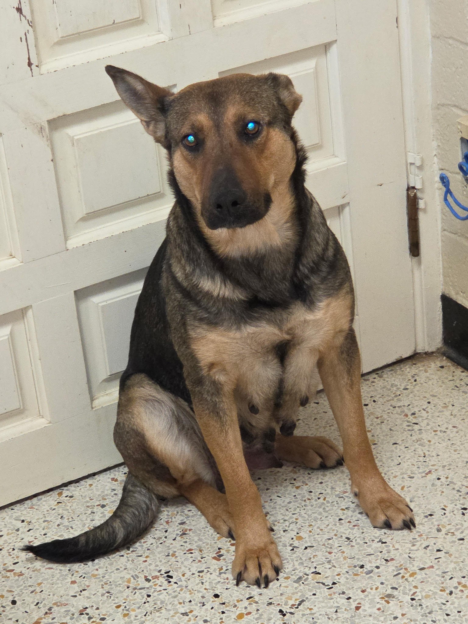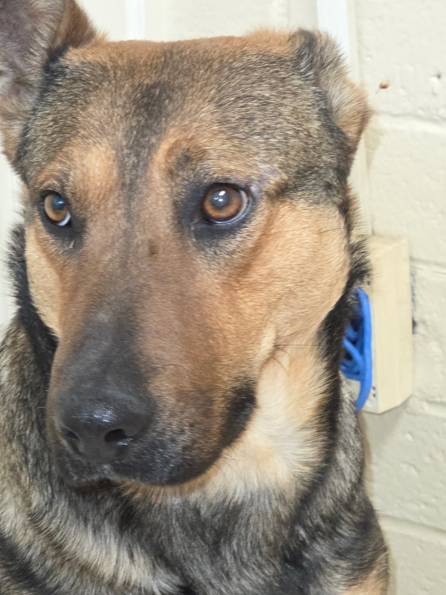 We recently pulled a 4-year-old German Shepherd mix weighing about 55 lbs from a high-kill shelter in Rocky Mount, NC. She was to die at 8 a.m. on Saturday, February 7th from overcrowding in the shelter, but we pulled her Friday afternoon to save her.