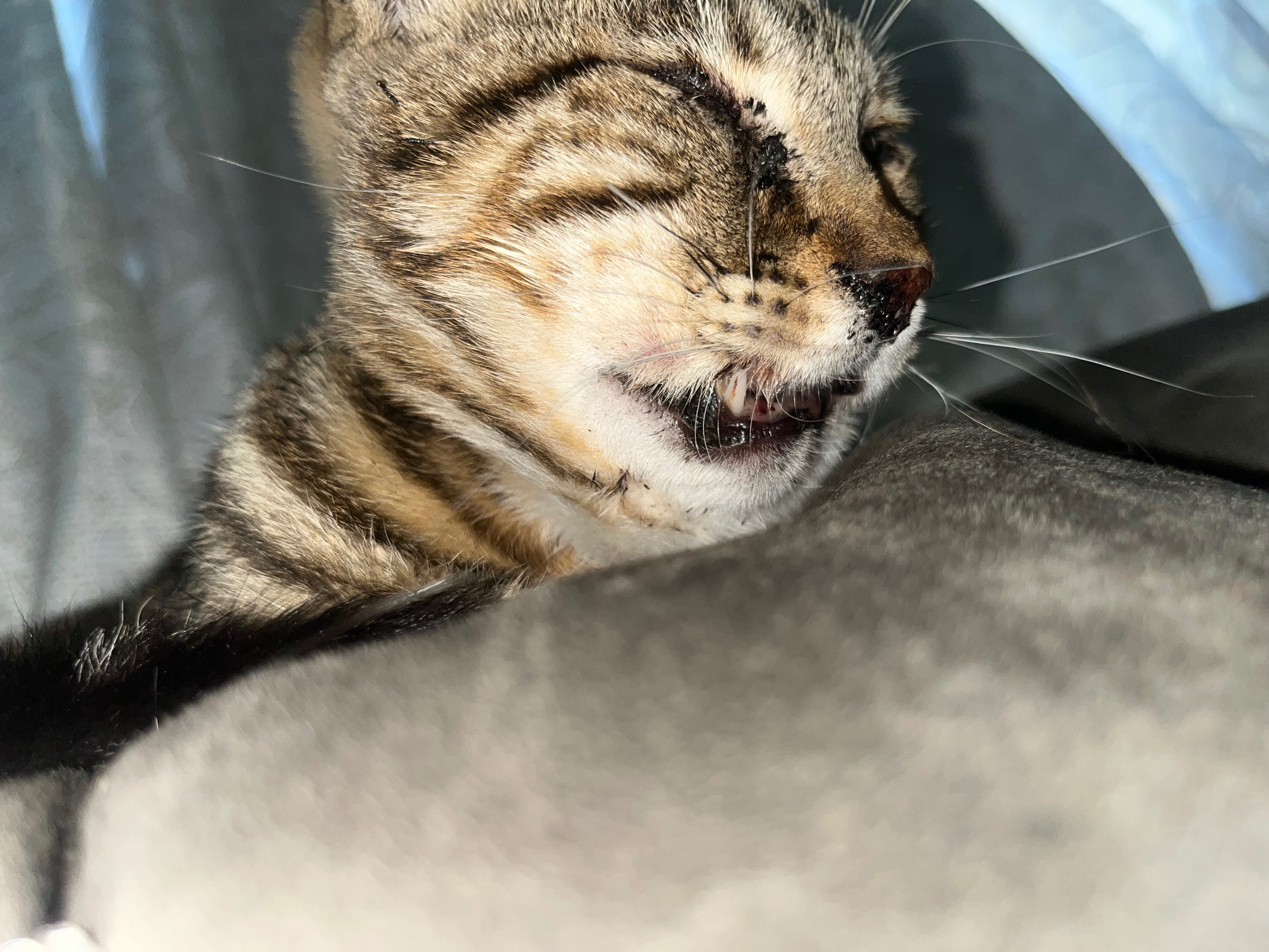 This is Romeo. On july 4th he taken off from home when he returned home On July 5th in the morning, I went outside to grab Romeo. I saw my baby’s face with blood and him not being able to breathe. I’m not sure if my cat Romeo was hit by a car or struck by a firework, but he came home with his face like this. It seems like his lower right side of his jaw might be broken.He only has 3 teeth now. It costs around $230 to do an X-ray on his face. If his jaw is broken, it can cost up to $3000, not including pain medication. I am asking for help because I don’t want to see my cat suffering and in pain. Anything is appreciated to help Romeo. Thank you.