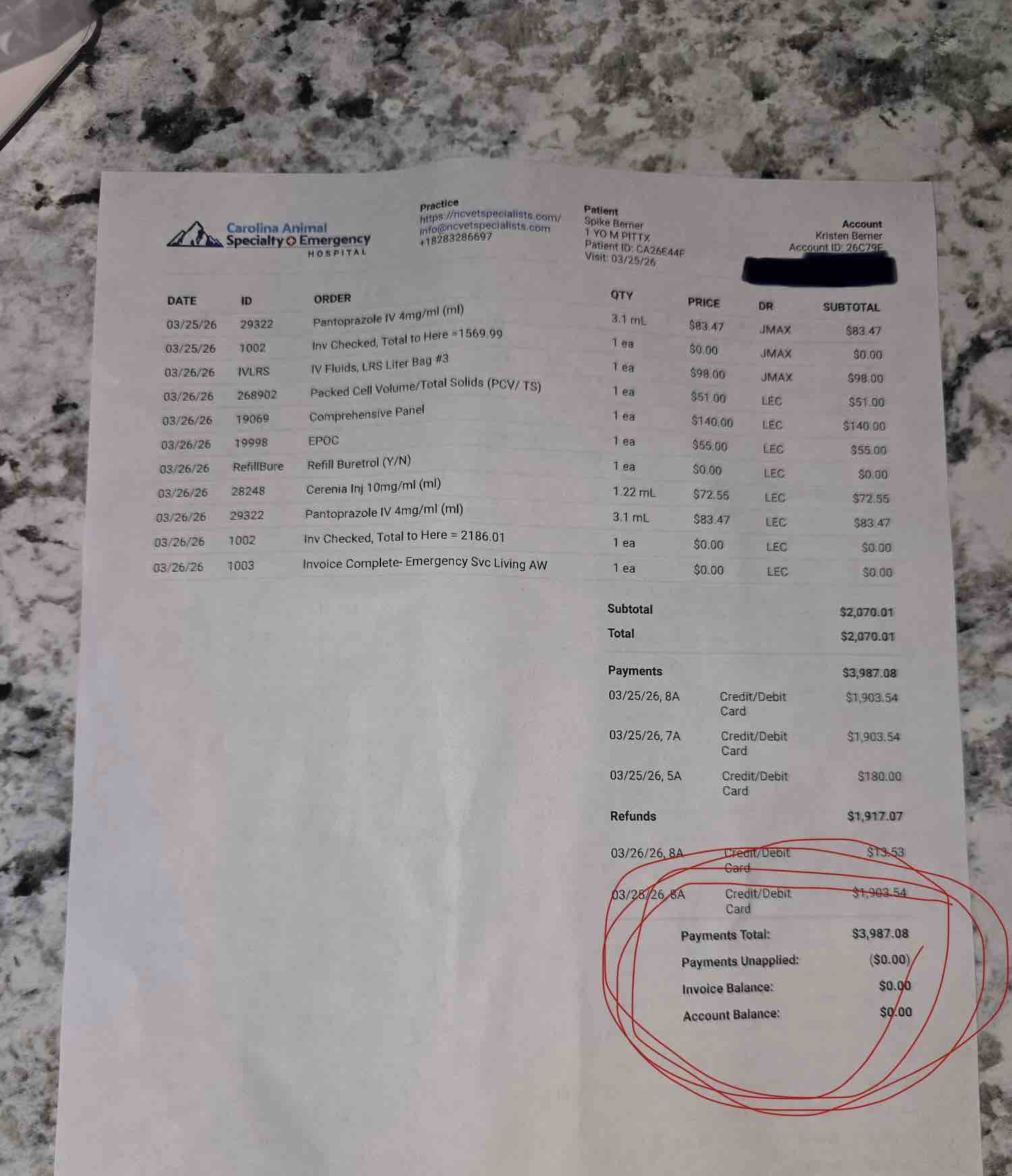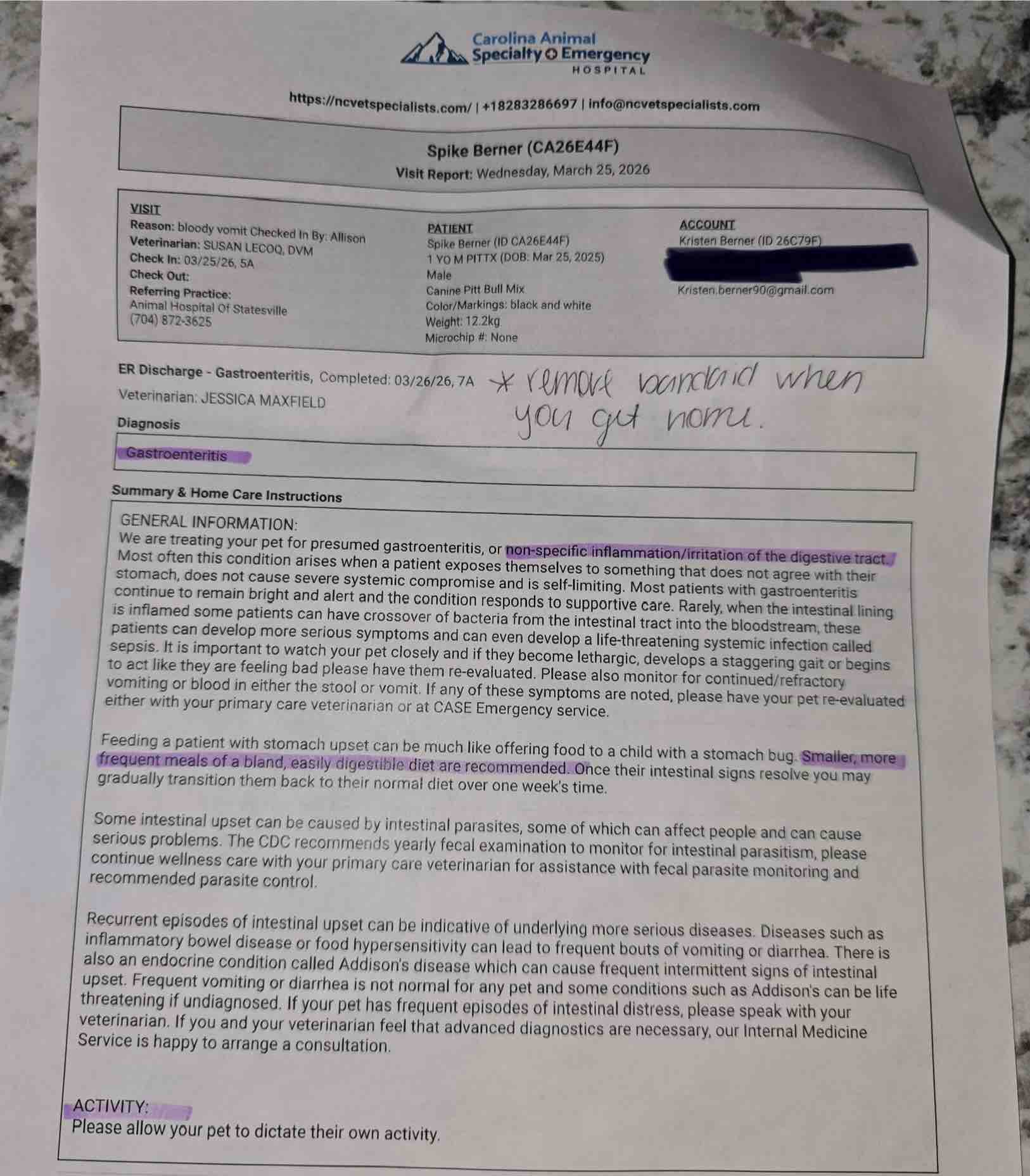 Hey All, you know I don’t normally do this stuff but my bestie of 20 plus years called me early yesterday (03.25.26) crying about my niece (Kora) and her baby dog Spike!! Kristen woke up to a her daughter’s 1 year old puppy (Spike) throwing up blood and severely dehydrated. She of course picked him up, picked the throw up up and brought him to the vet. While she was waiting there he was still puking up blood and just getting worse. Well of course they ran all sorts of tests and the only things that came back was him being severely dehydrated. He spent the night (24 hours) at the vet with the IV and fluids and 24 hour watch.