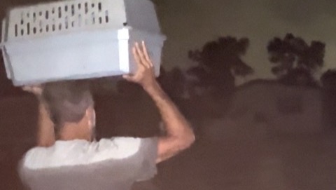 This was and is a very Traumatic experience for her and her husband. When the rain started getting so high it was coming in the house, “Gary grabbed our cat put him in his carrier and put her on his head and carry her out of the house to a river of water that