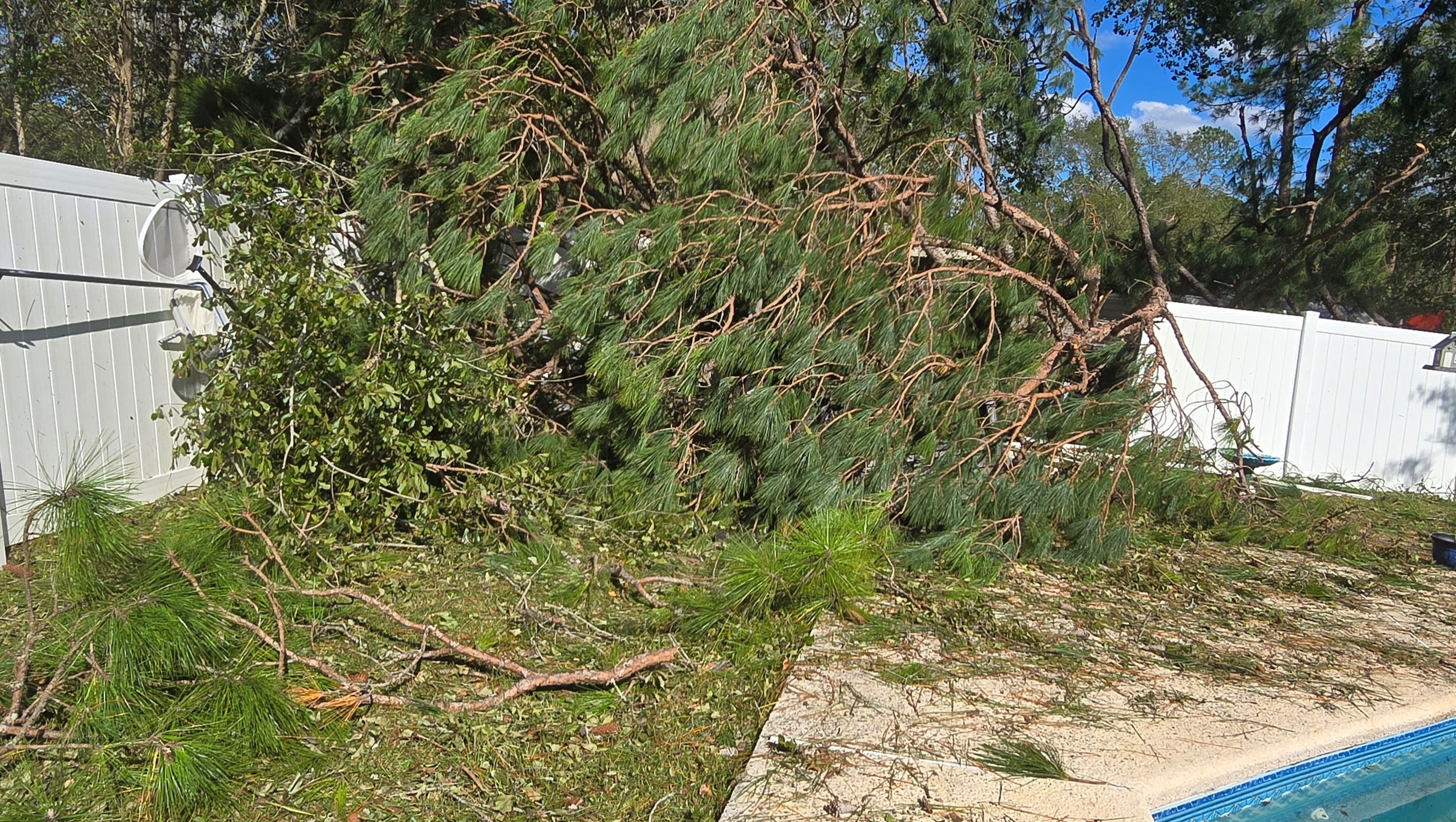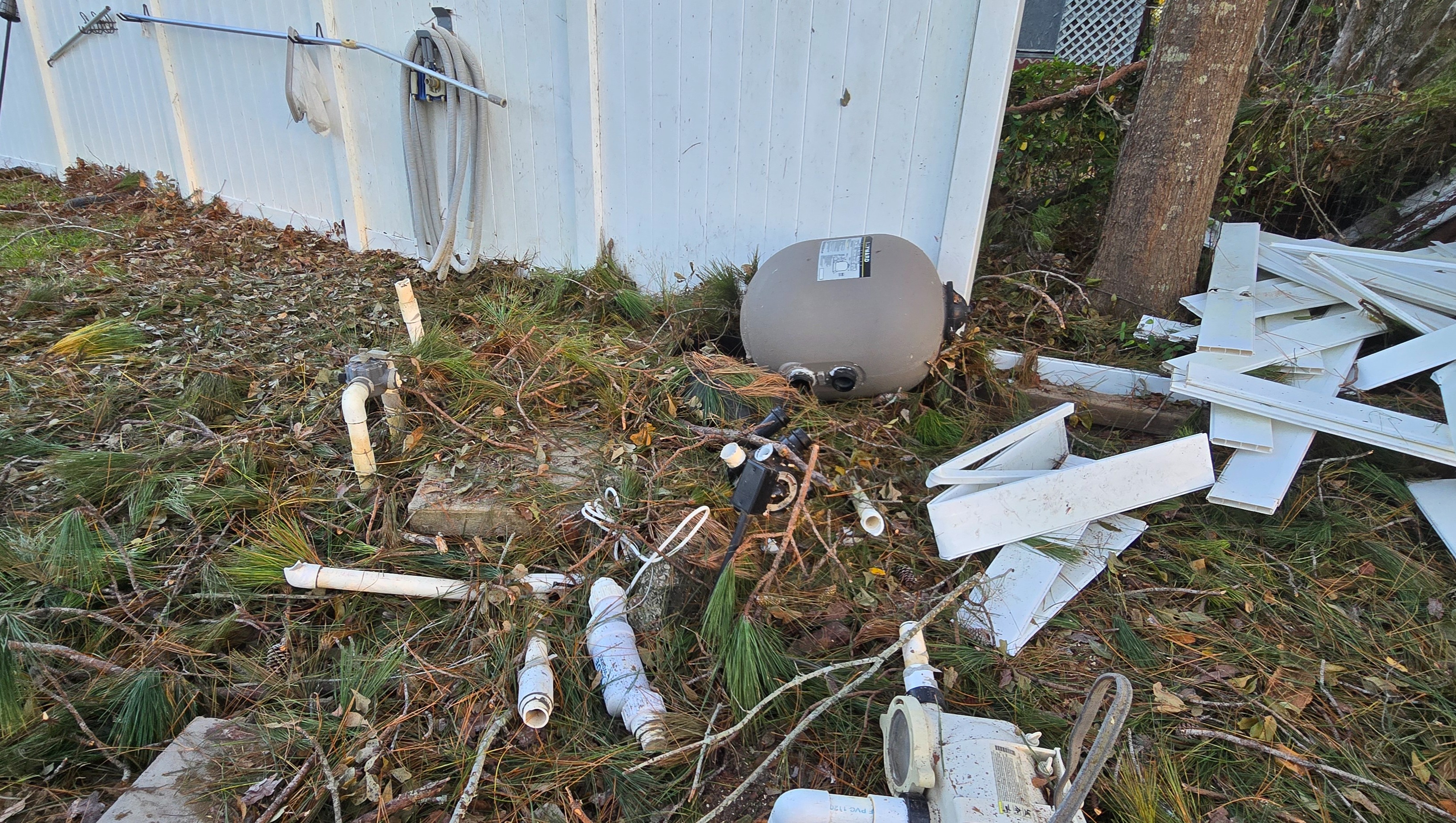 Then in September, Hurricane Helene hit our town. I had major damage that occurred: my flooring inside the house buckled up, my roof needs to be replaced, the quote is $11k (insurance willing to pay $8k); the ceiling in one room will need to be replaced, my fence needs repairs, and my inground pool equipment was completely destroyed, including the pipes/plumbing. The pool liner needs to be replaced due to tree branches falling/tearing it. Insurance is not willing to cover the liner replacement; the quote for pool repair is $18k.