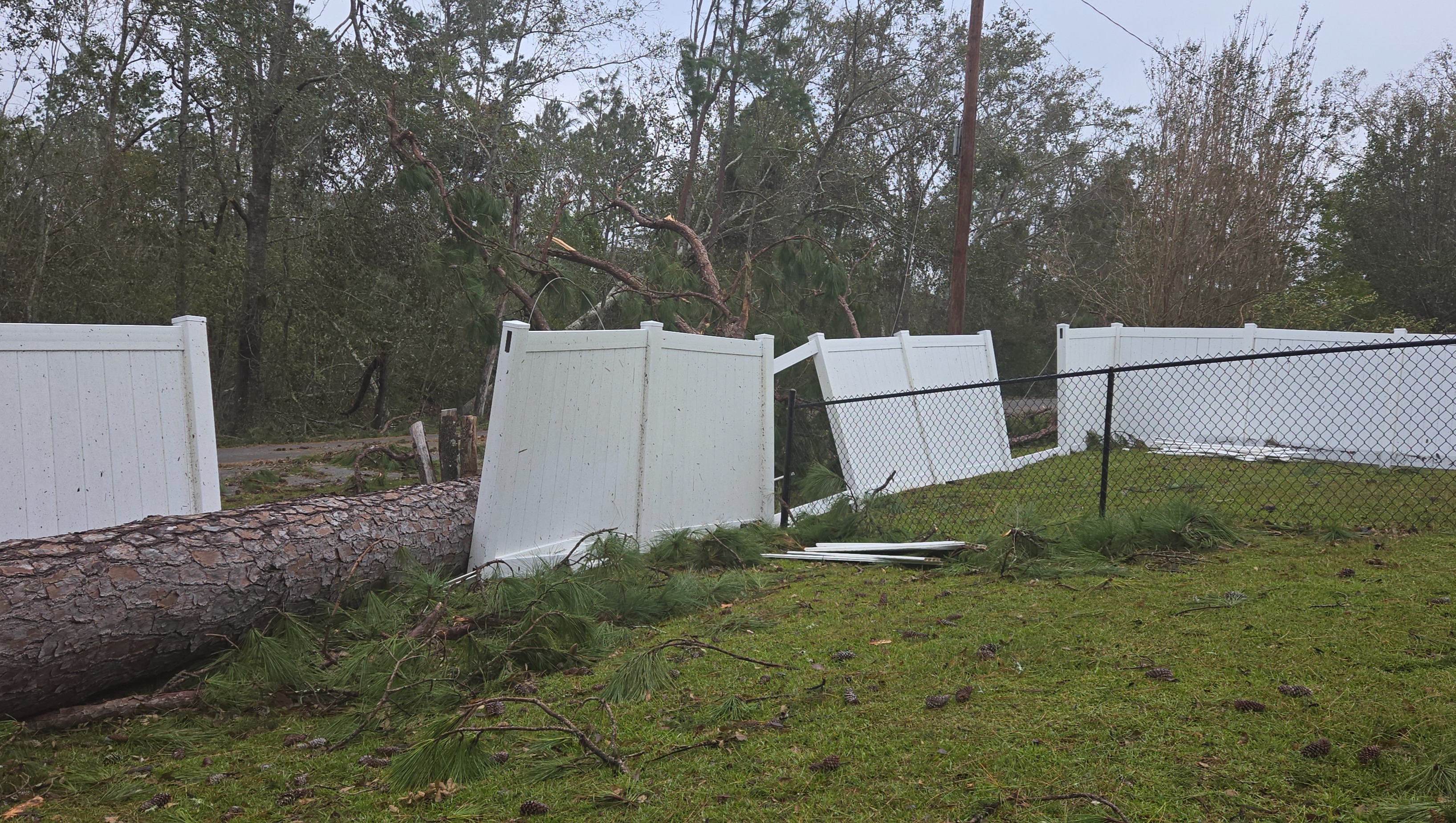 I had to pay $1k to have a tree cut down that was a threat to falling as it was uprooted during the storm.