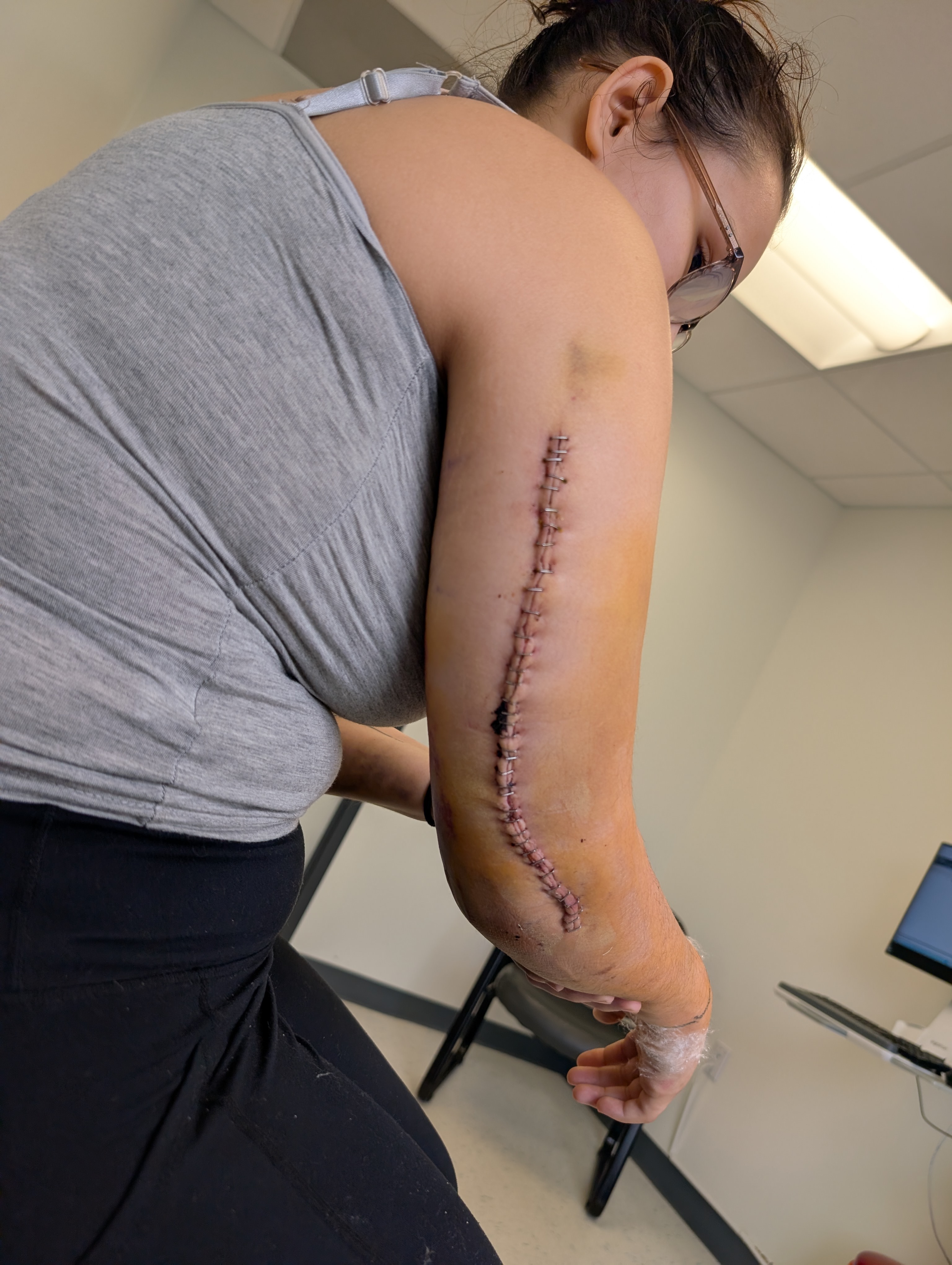 She is a very hard worker and also attends college, holding a 3.97 GPA for the 3 years she has done so far. At this time, she is supposed to apply for PA school in just 2 months. She is determined to continue with school and has been able to attend most classes with accommodations as she is right-handed and that is the arm she sustained the most injury to. Zay had just gotten a place of her own 3 weeks before the accident. At this time, we do not know when she will be able to return to work.