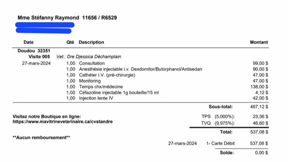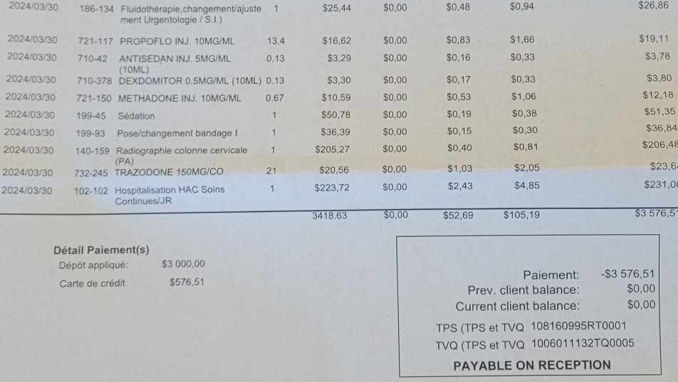 J'ai entendu le docteur dire à ma Maman que ca lui couterait un minimum de $6000..